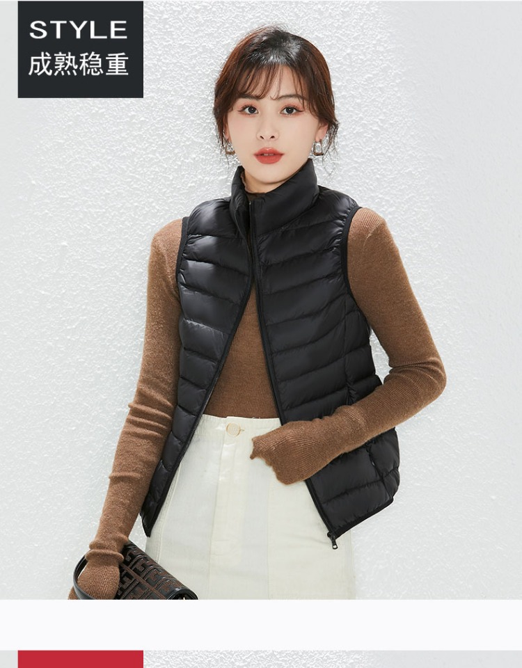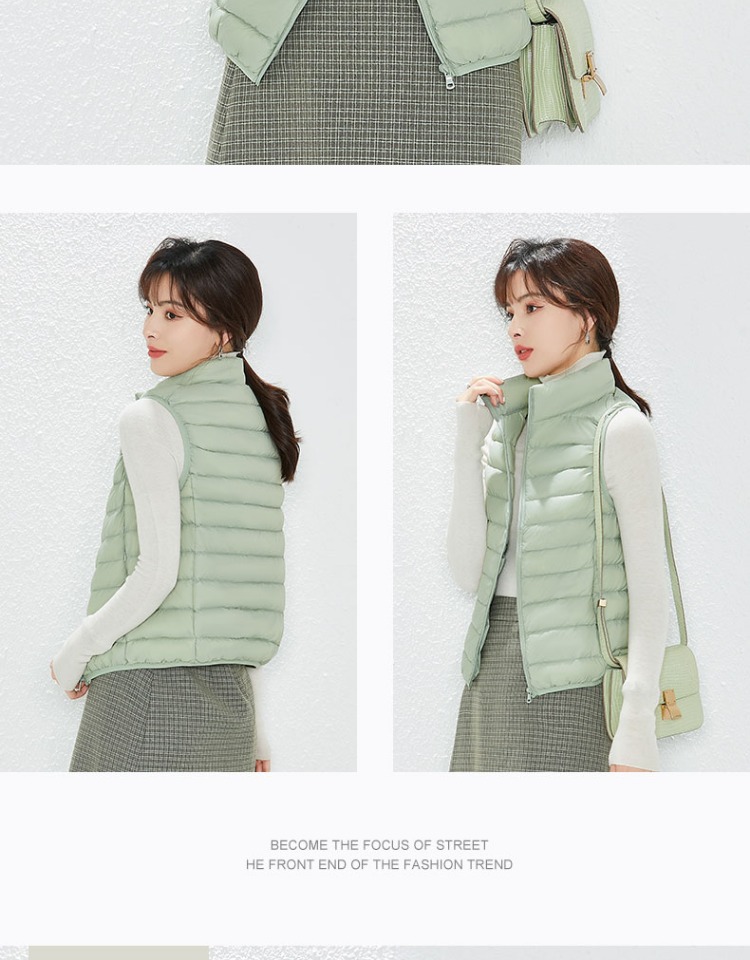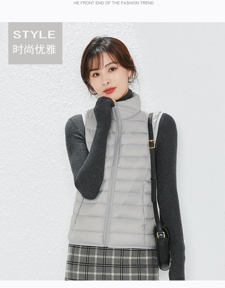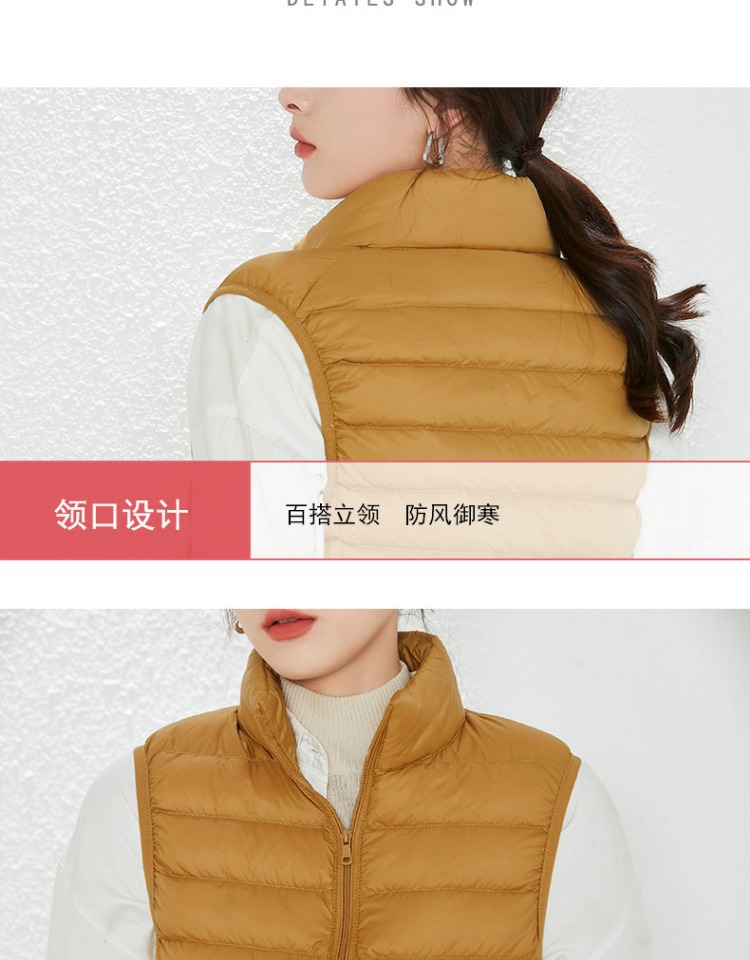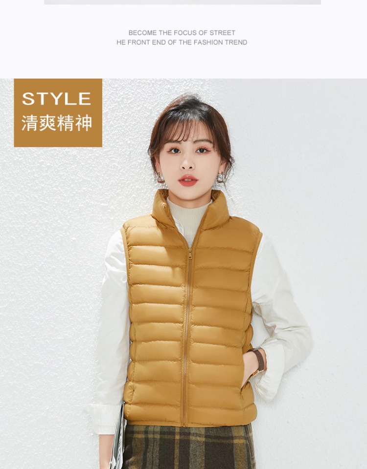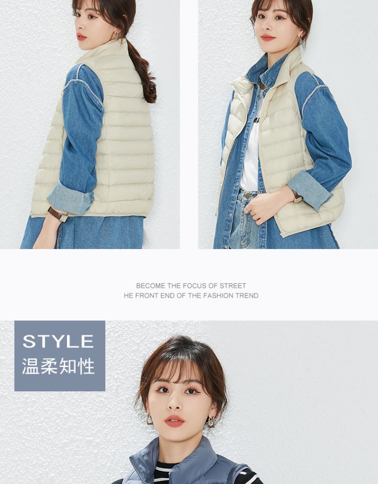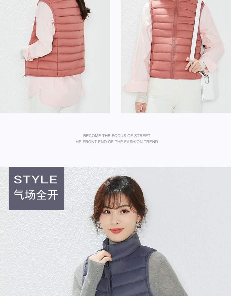 국경 TikTok 가을, 겨울 새로운 경량 다운 재킷 여성 캐주얼 조끼 패션 양복 조끼 스탠드 칼라 조끼