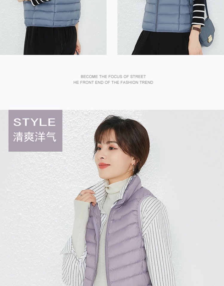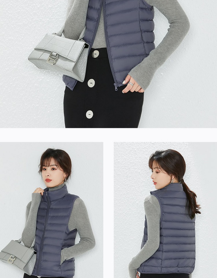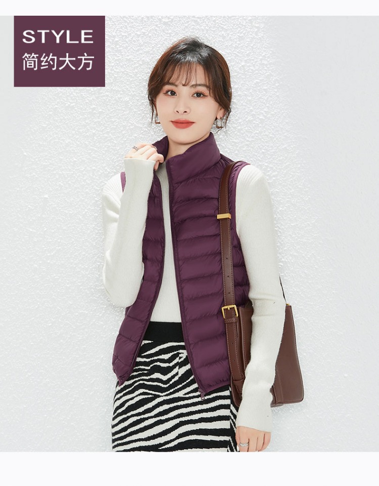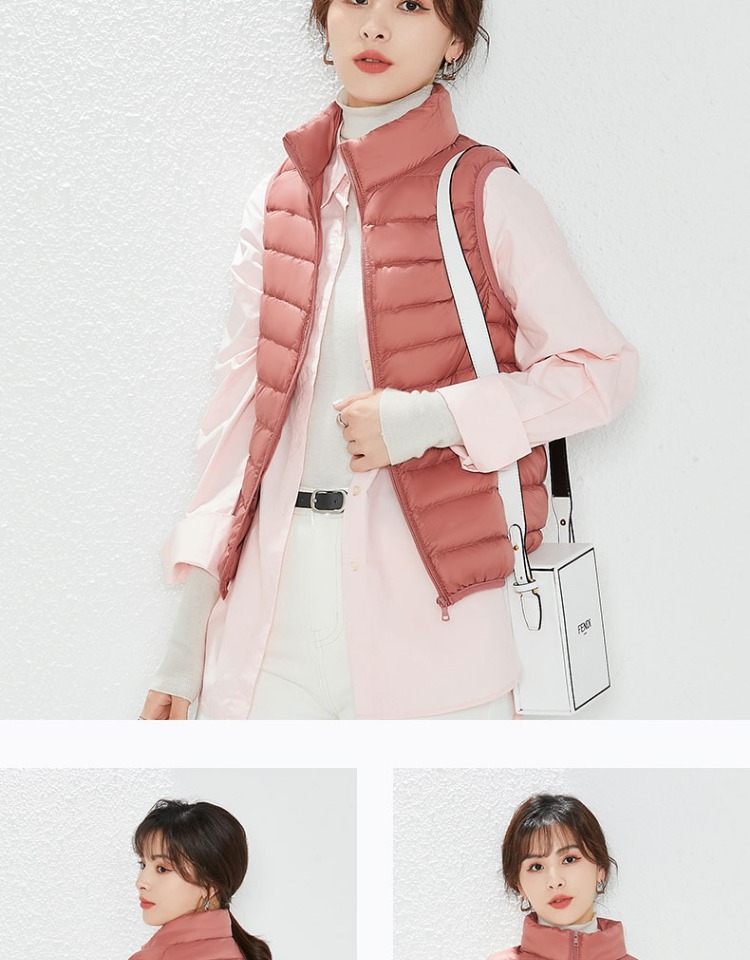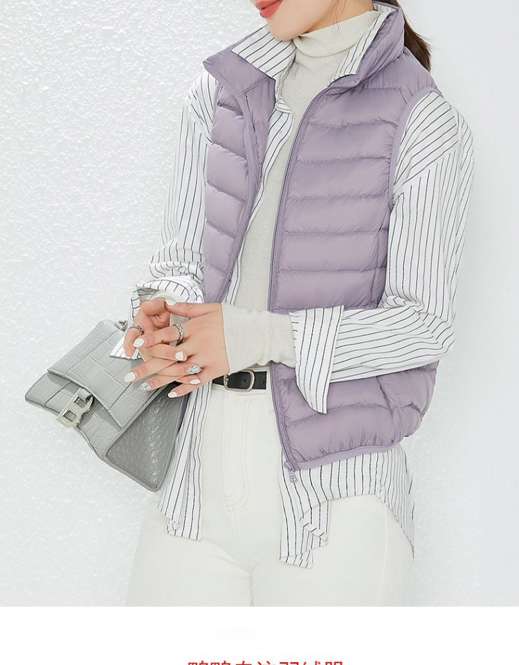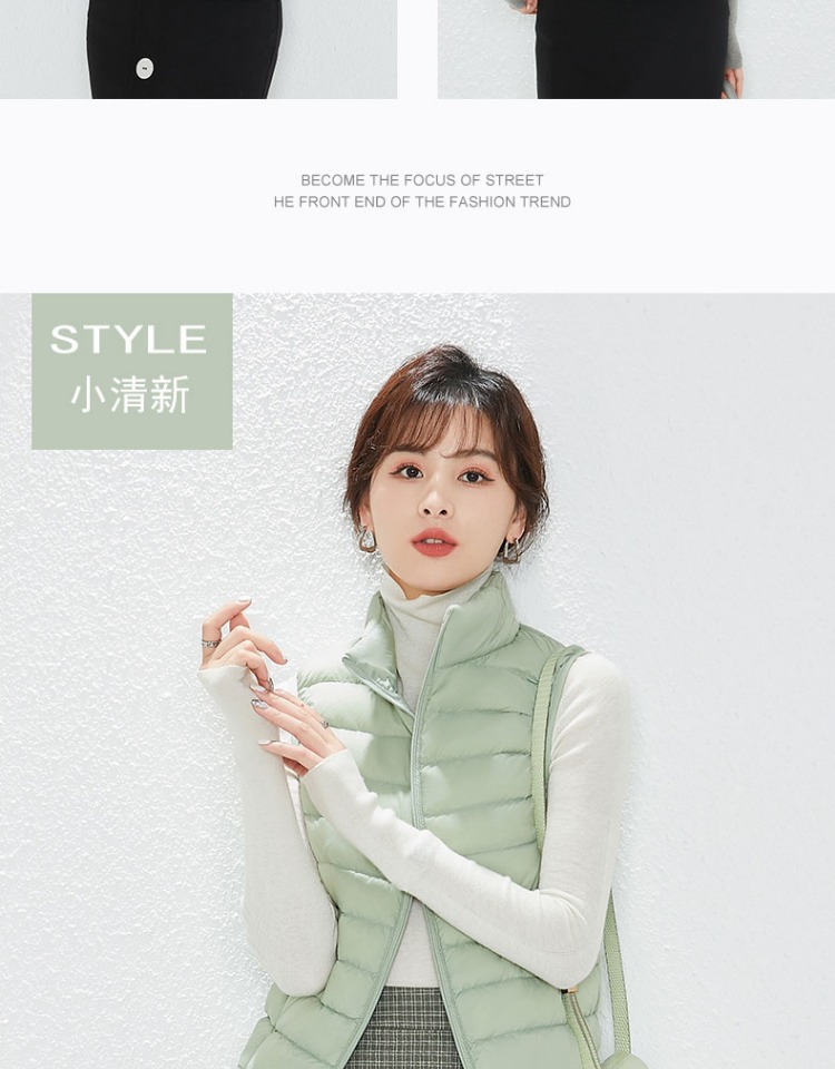 국경 TikTok 가을, 겨울 새로운 경량 다운 재킷 여성 캐주얼 조끼 패션 양복 조끼 스탠드 칼라 조끼