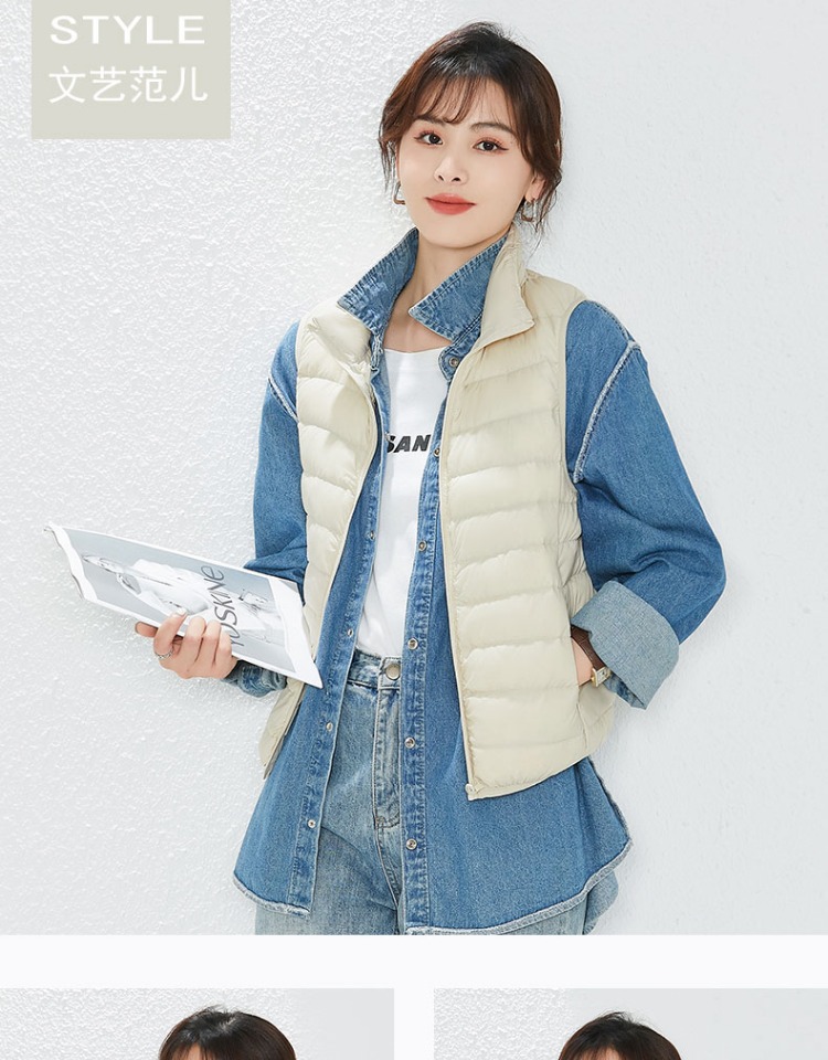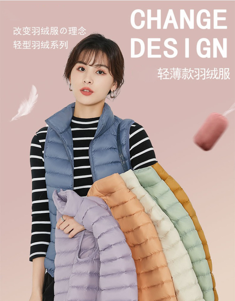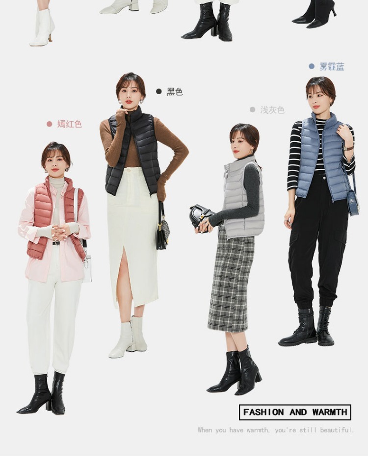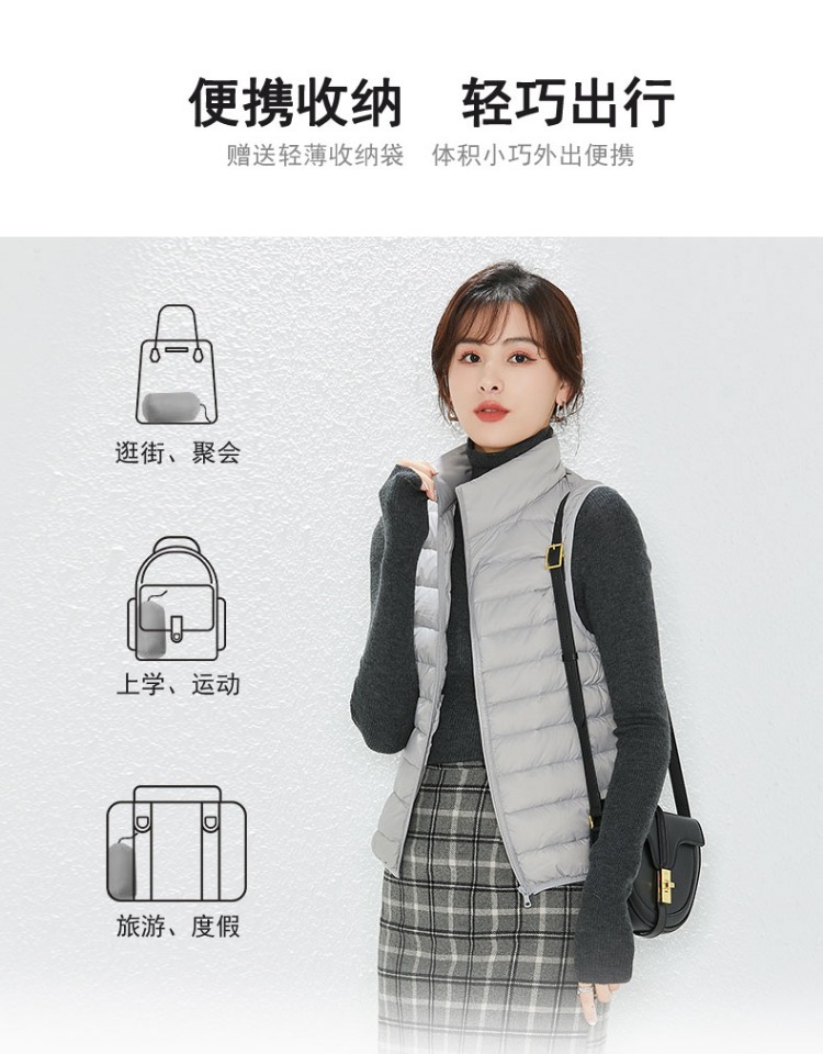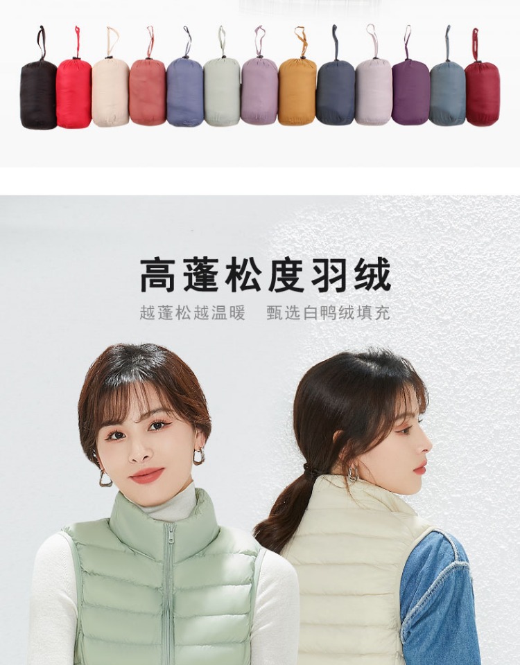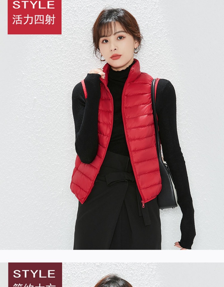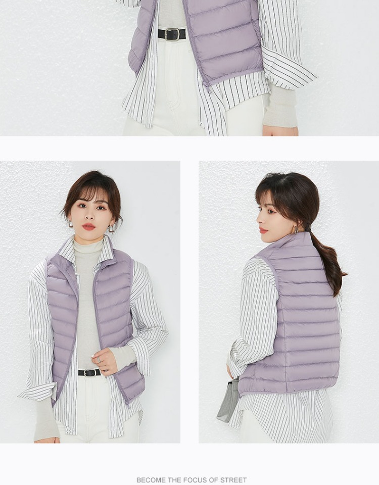 국경 TikTok 가을, 겨울 새로운 경량 다운 재킷 여성 캐주얼 조끼 패션 양복 조끼 스탠드 칼라 조끼