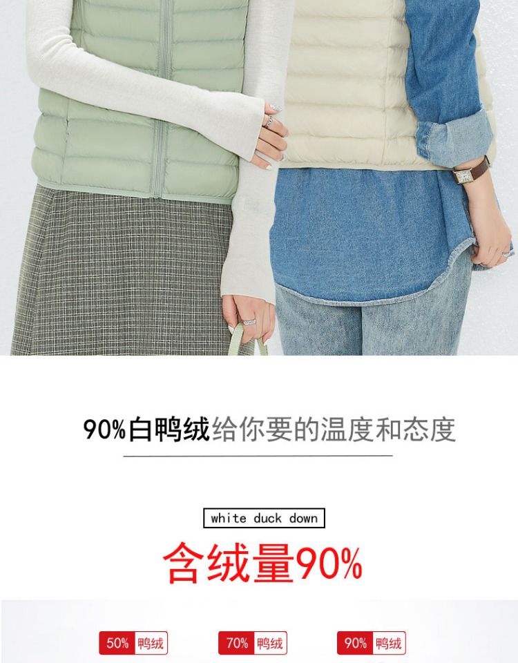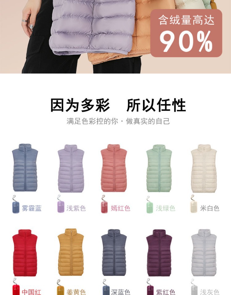 국경 TikTok 가을, 겨울 새로운 경량 다운 재킷 여성 캐주얼 조끼 패션 양복 조끼 스탠드 칼라 조끼스토어 가기