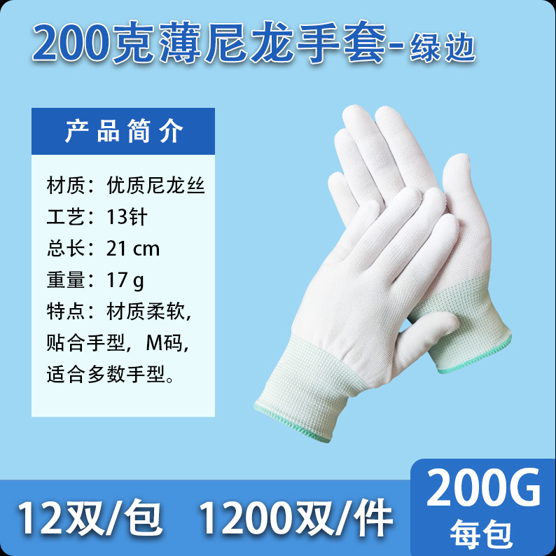 • 신축성 있는 나일론 얇은 장갑 - 녹색 손목(핫멜트 가장자리)