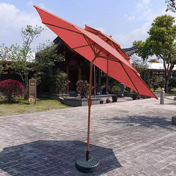 • 흔들리는 머리 우산 더블 탑 로즈 레드 2.7m 물탱크 베이스 없음
