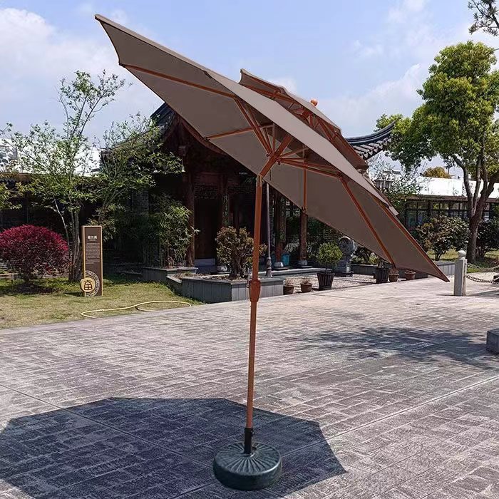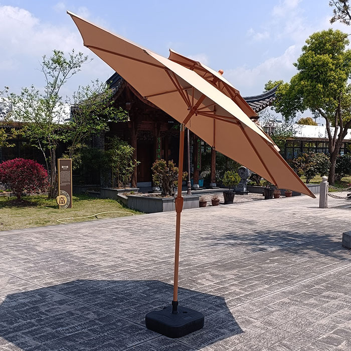 • 흔들리는 머리 우산 더블 탑 브라운 2.7m 물탱크 베이스 없음