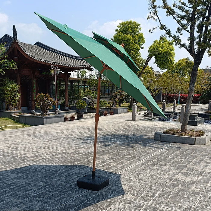 • 흔들리는 머리 우산 더블 탑 짙은 녹색 2.7m 플러스 35kg 탱크 베이스