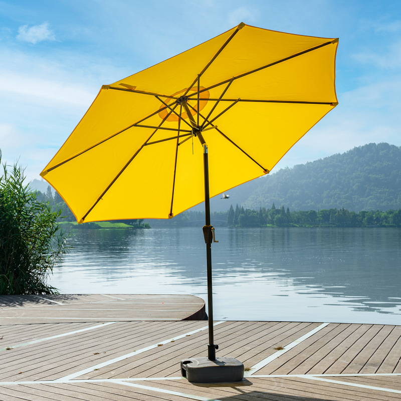 • 흔들리는 머리 우산 싱글 탑 골든 옐로우 2.7m 플러스 물 탱크 베이스
