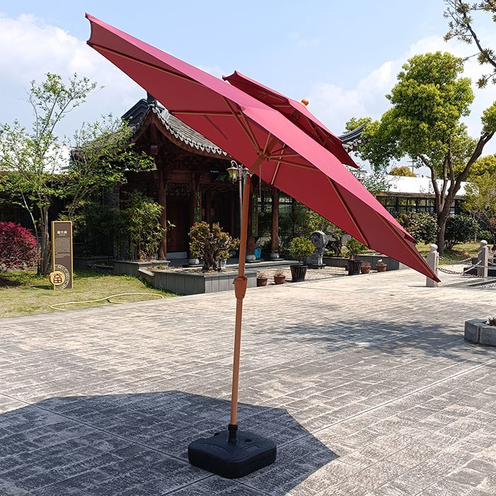 • 흔들리는 머리 우산 더블 탑 버건디 2.7m 플러스 35kg 탱크 베이스