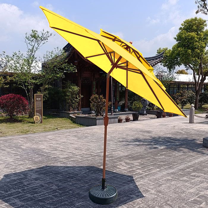 • 흔들리는 머리 우산 더블 탑 골든 옐로우 2.7m 탱크 베이스 없음