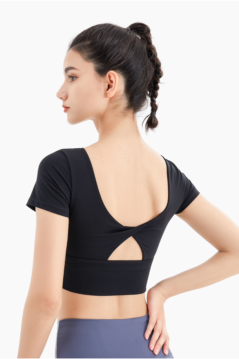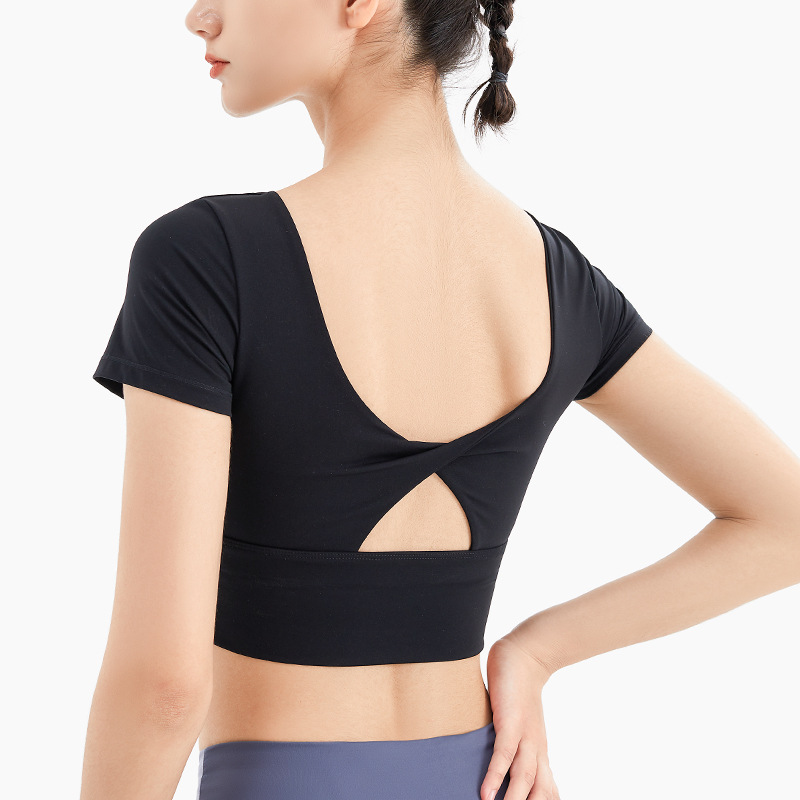 새로운 스포츠 조끼 여성용 통기성 야외 피트니스 탑 가슴 패드 속건 요가 의류 반팔 티셔츠스토어 가기