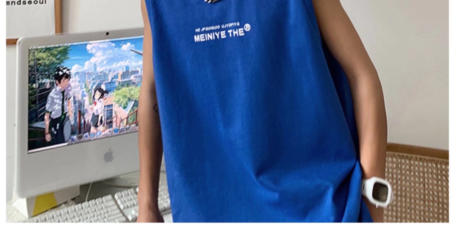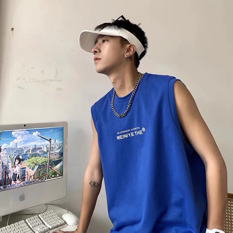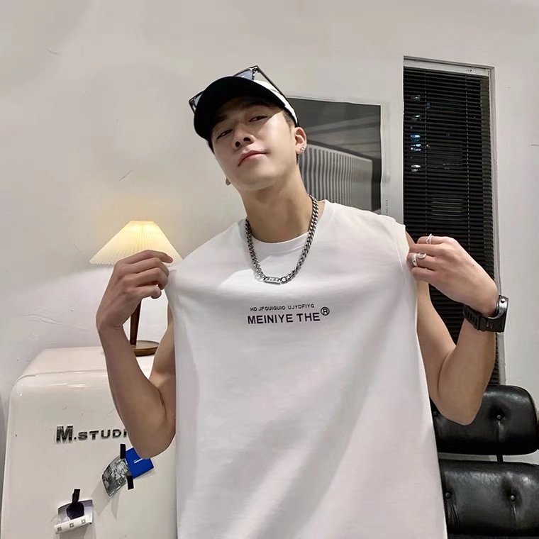 뚱뚱한 민소매 티셔츠 남자의 유행 여름 유행 브랜드 느슨한 학생 양복 조끼 남자의 스포츠 휘트니스 농구 조끼 남자의