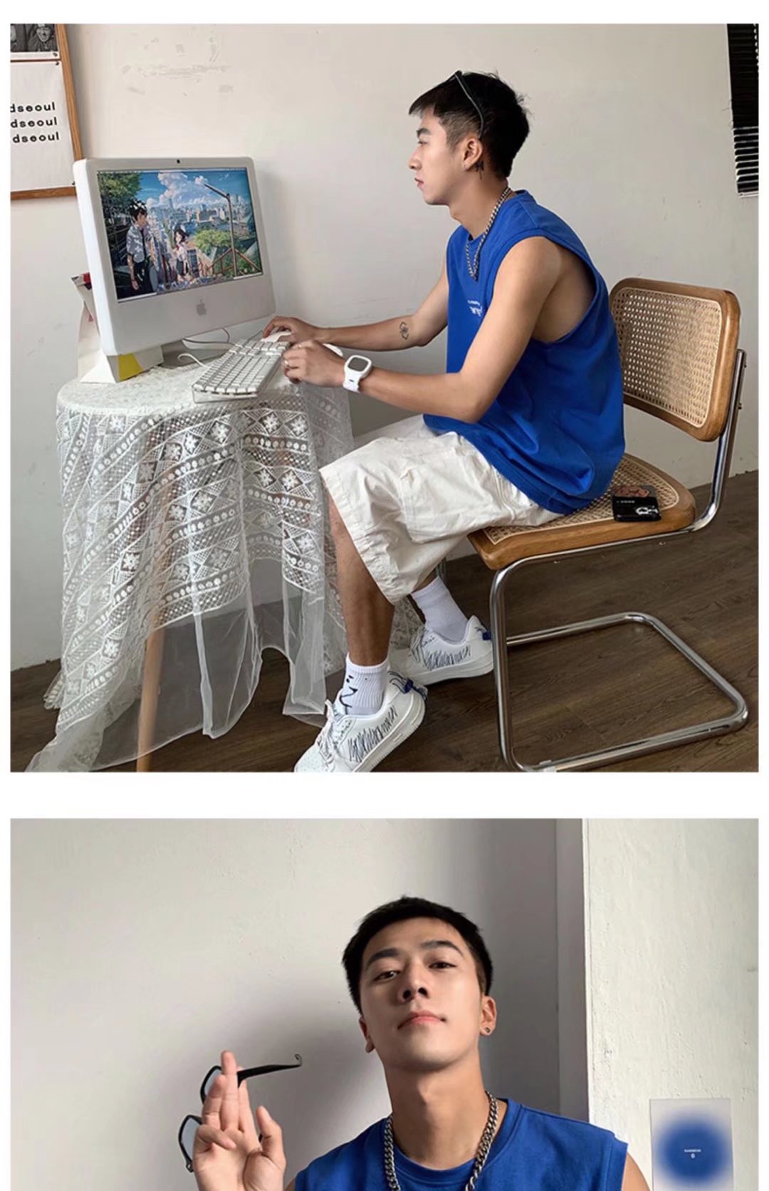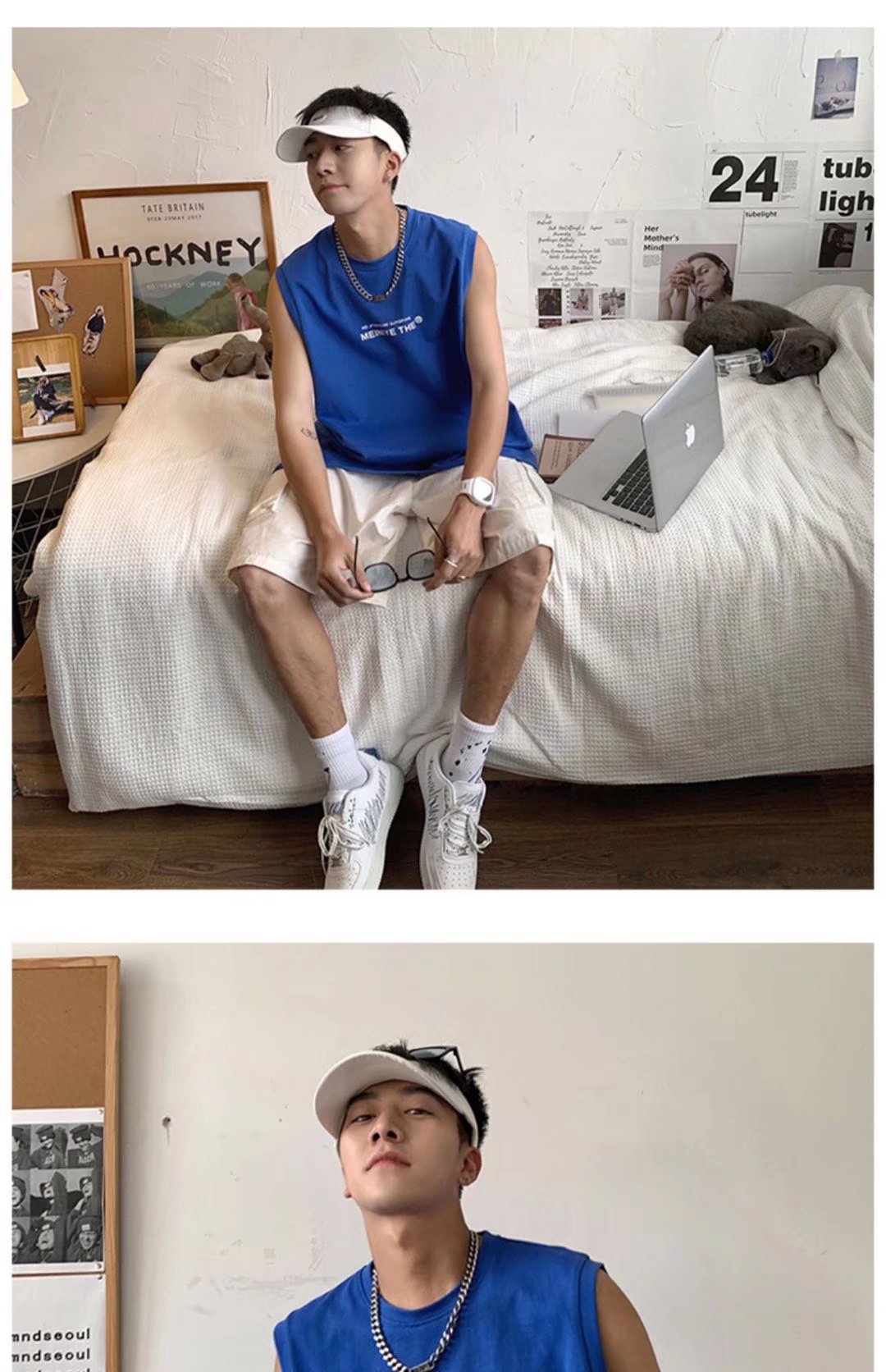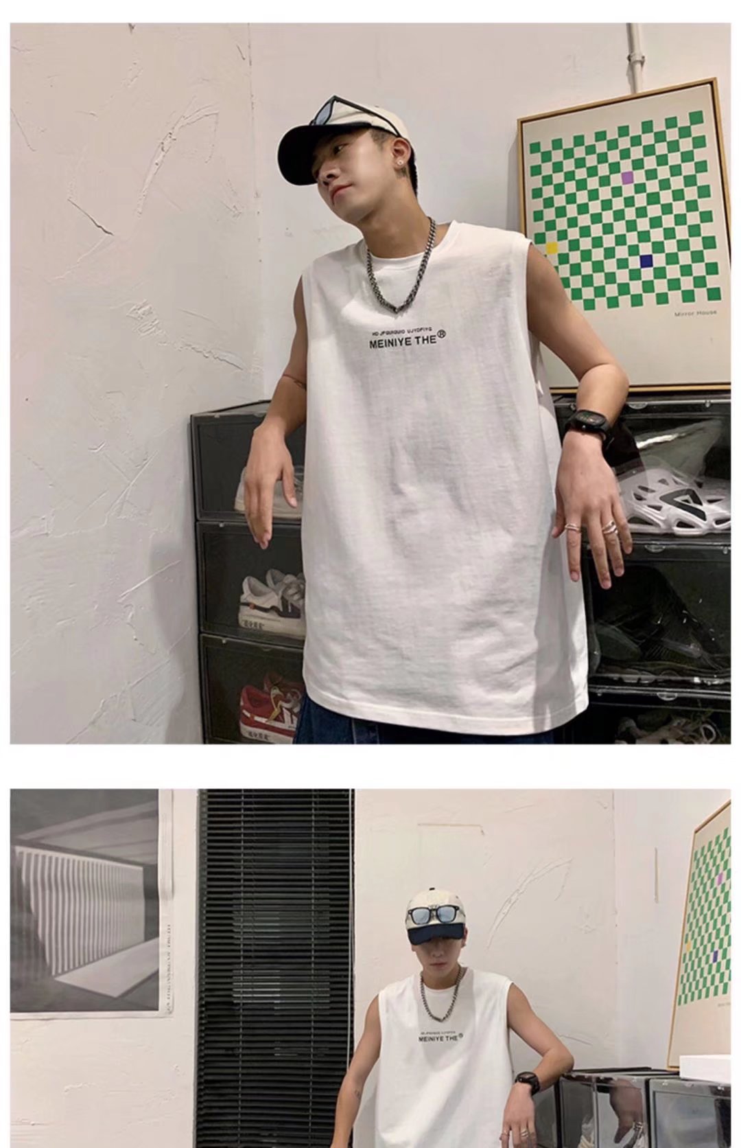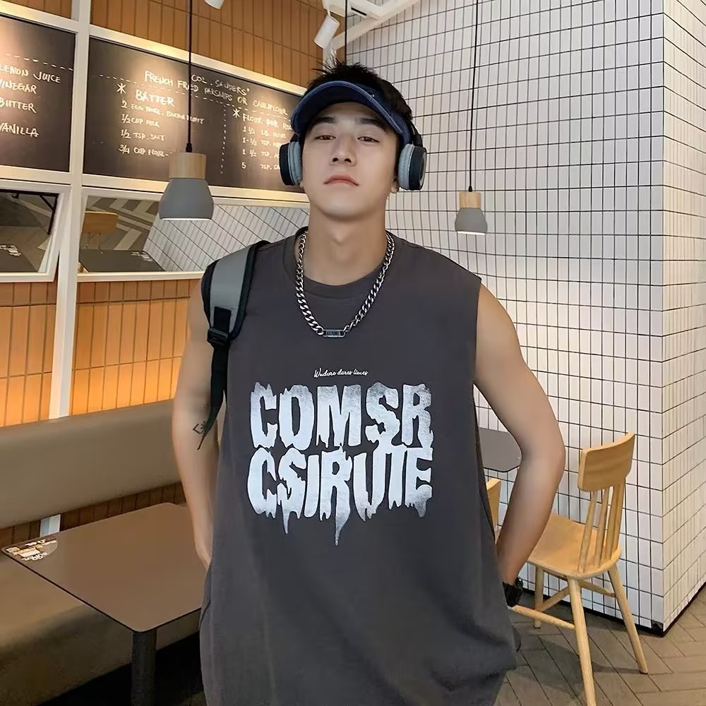 뚱뚱한 민소매 티셔츠 남자의 유행 여름 유행 브랜드 느슨한 학생 양복 조끼 남자의 스포츠 휘트니스 농구 조끼 남자의스토어 가기