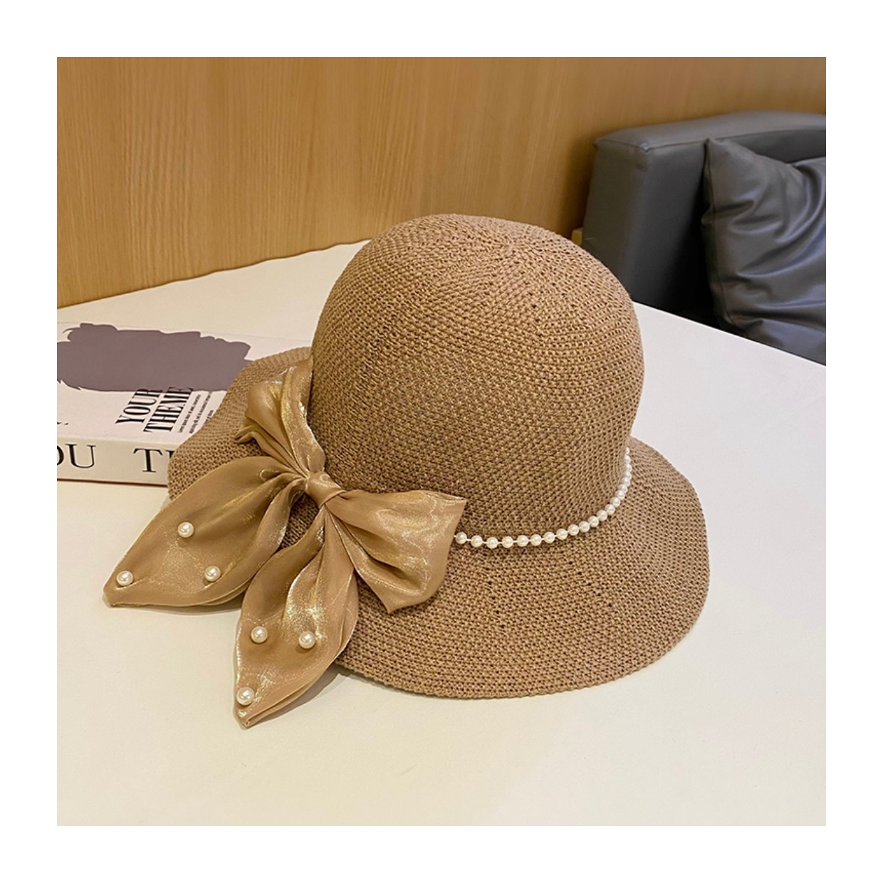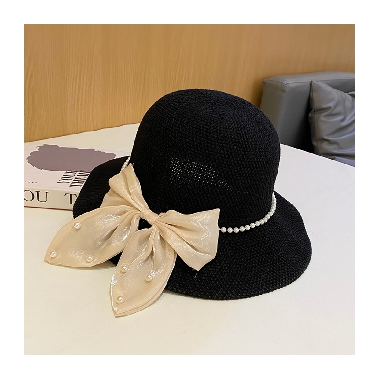 봄과 여름 2023 새로운 나비 진주 통기성 어부 모자 여름 한국식 얇은 자외선 차단제 어린이 모자스토어 가기