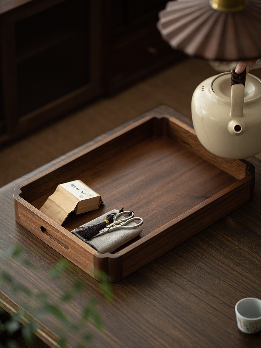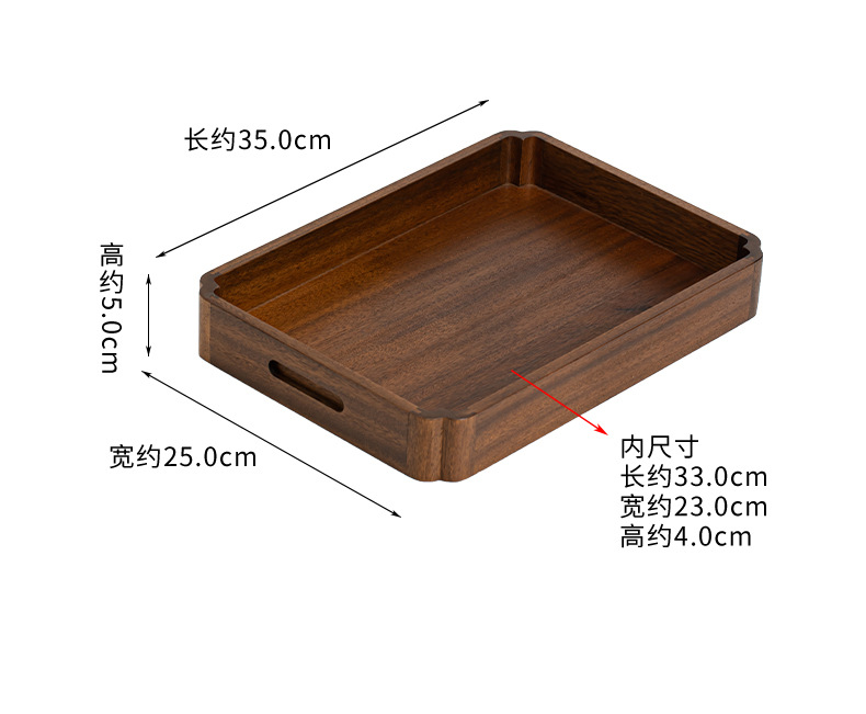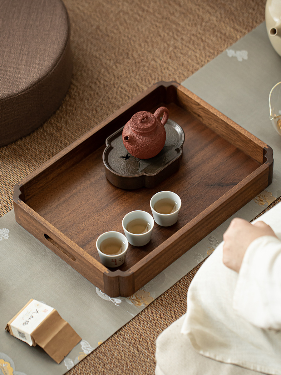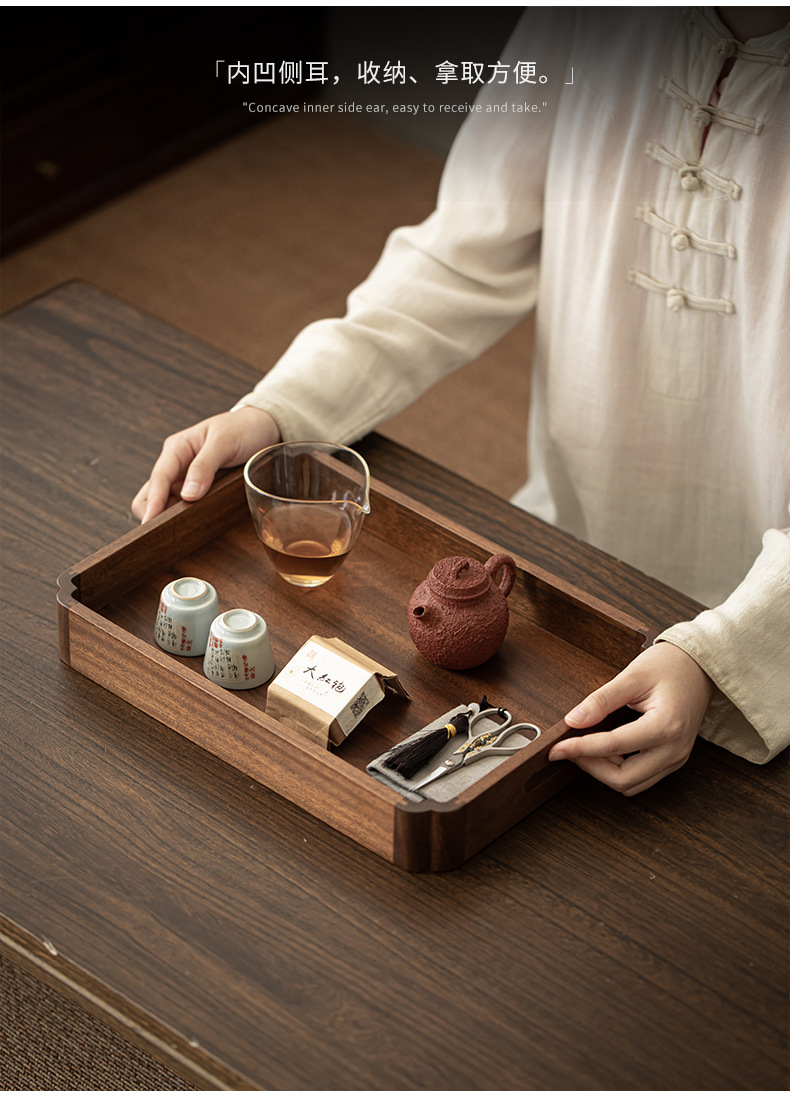 가정용 블랙 호두 티 트레이 단단한 나무 직사각형 트레이 창조적 인 나무 차 세트 트레이 찻잔 보관 접시 디너 플레이트
