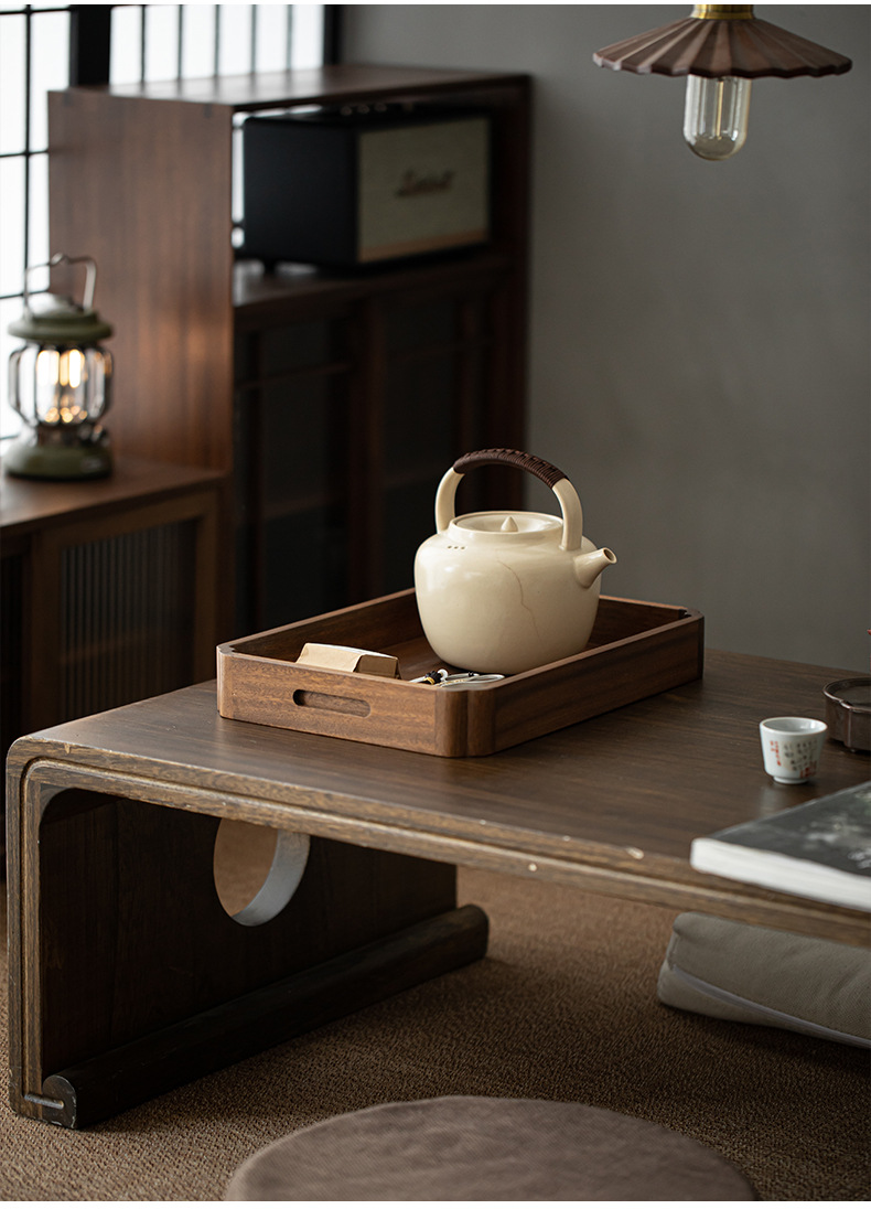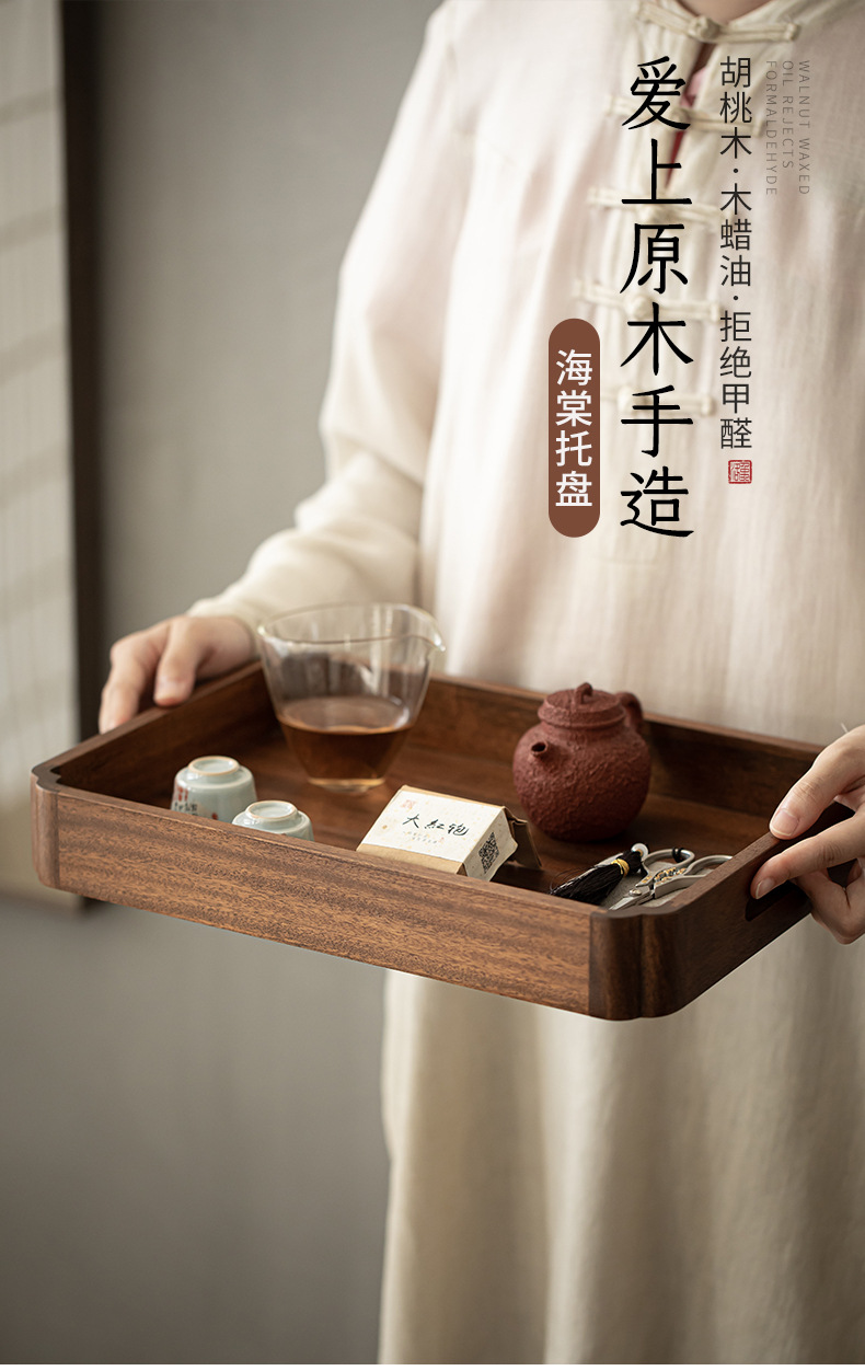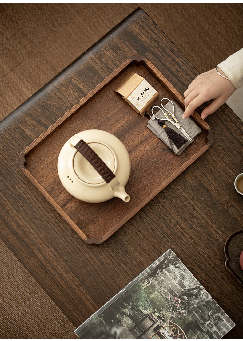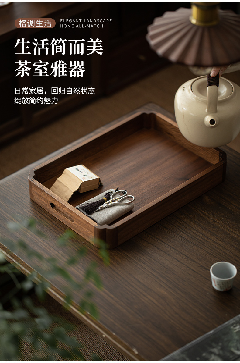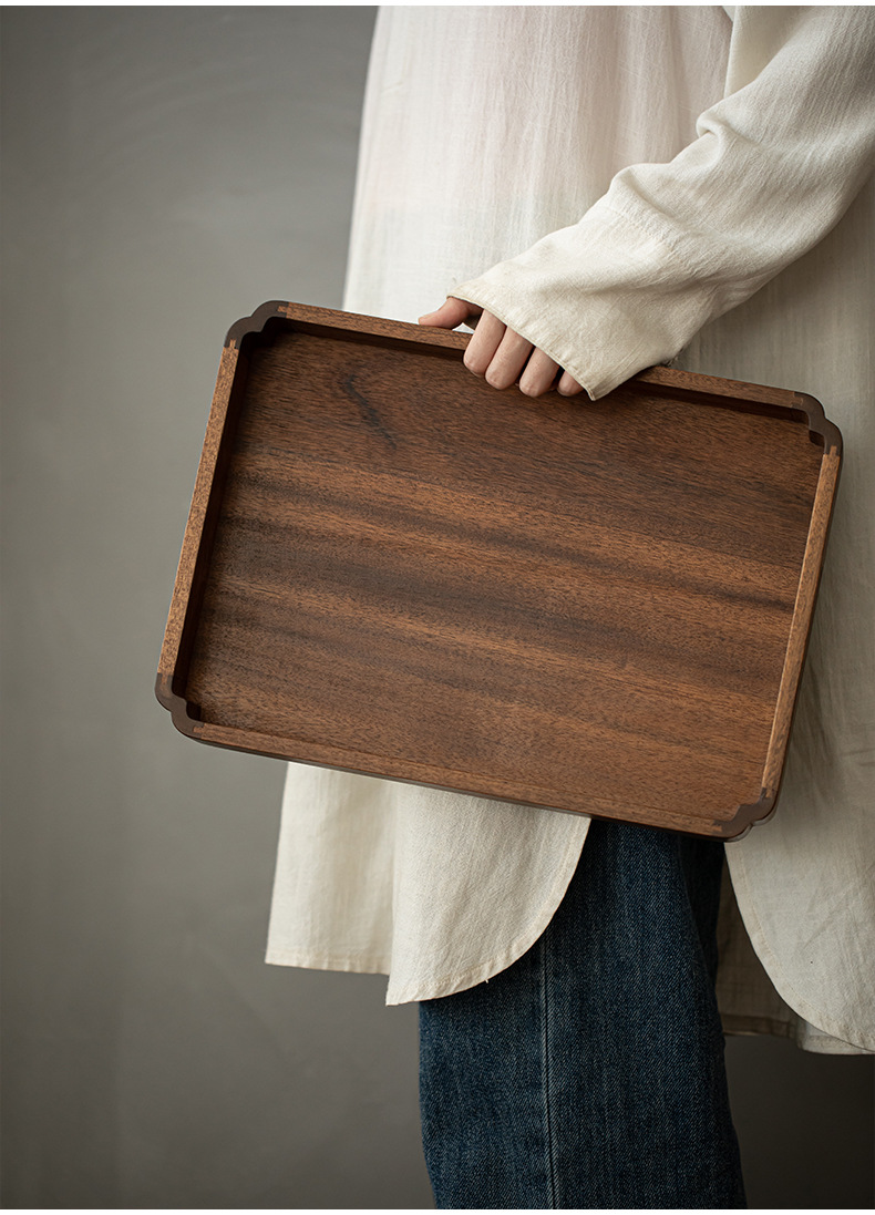 가정용 블랙 호두 티 트레이 단단한 나무 직사각형 트레이 창조적 인 나무 차 세트 트레이 찻잔 보관 접시 디너 플레이트스토어 가기