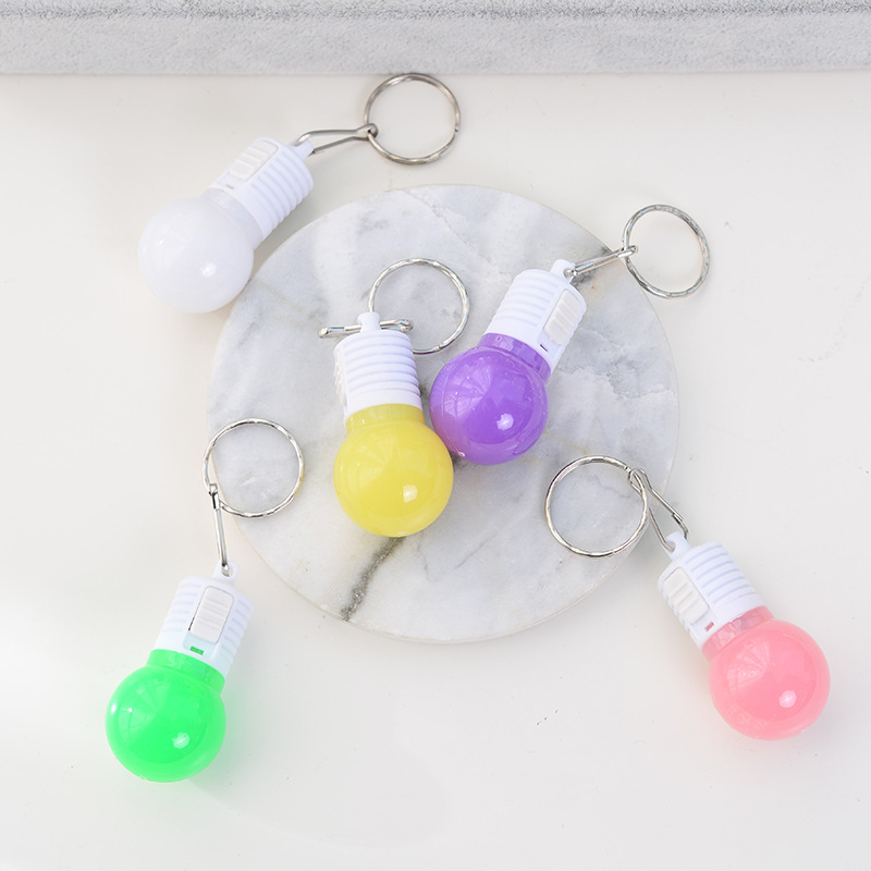 전구 키 체인 플래시 미니 전구 스톨 어린이 장난감 키 링 푸시 배수 작은 선물