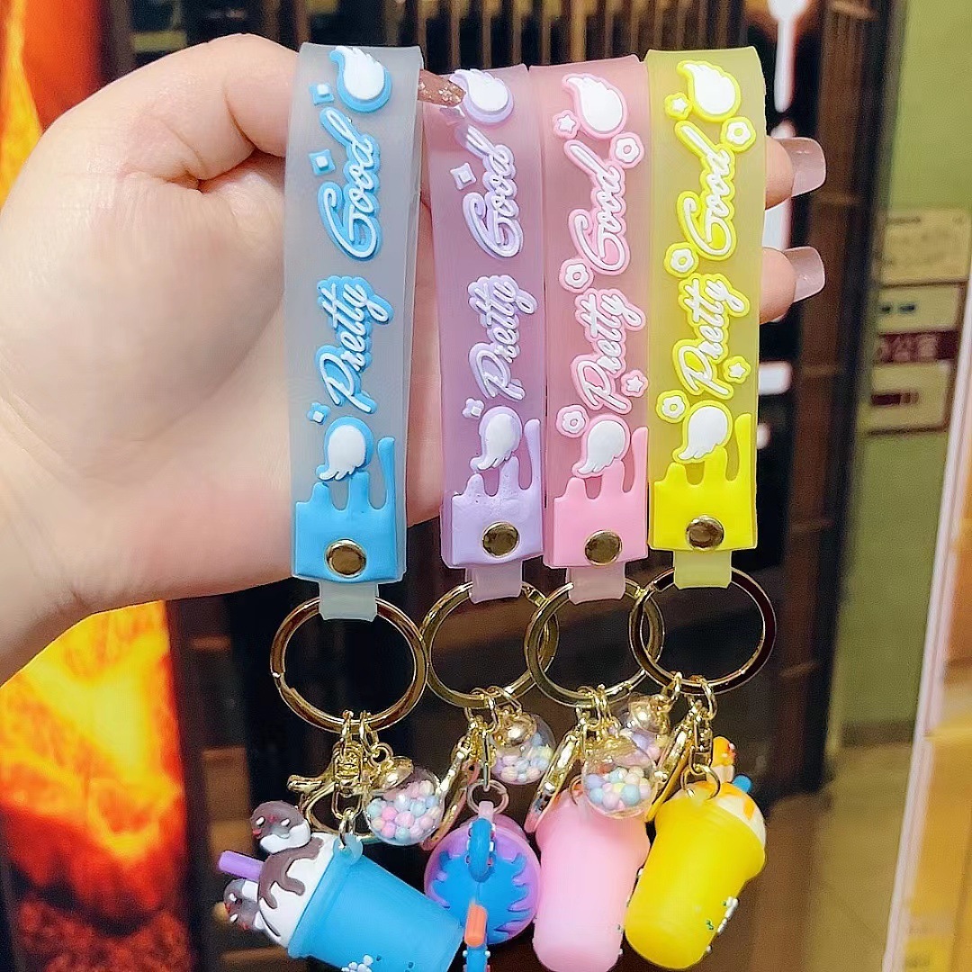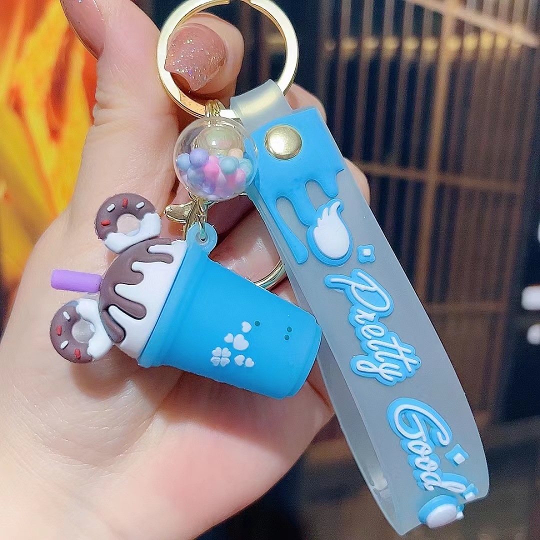 크리 에이 티브 아이스크림 열쇠 고리 밀크 티 컵 PVC 펜던트 성격 열쇠 고리 작은 선물 자동차 펜던트 도매스토어 가기