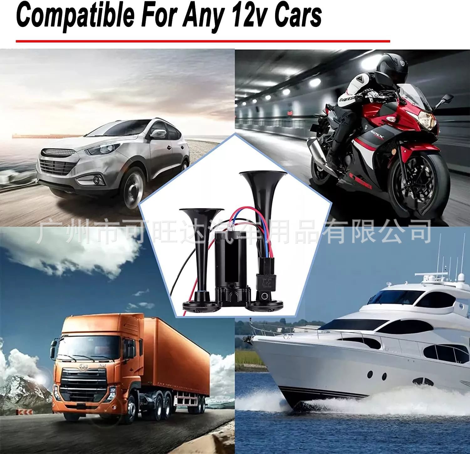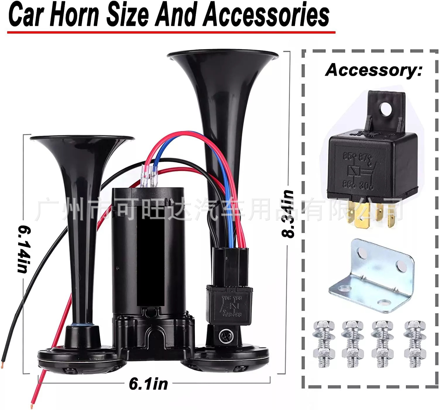600DB 블랙 전기 경적 공급 더블 튜브 금속 일체형 전기 펌프 경적 릴레이 자동차 경적스토어 가기