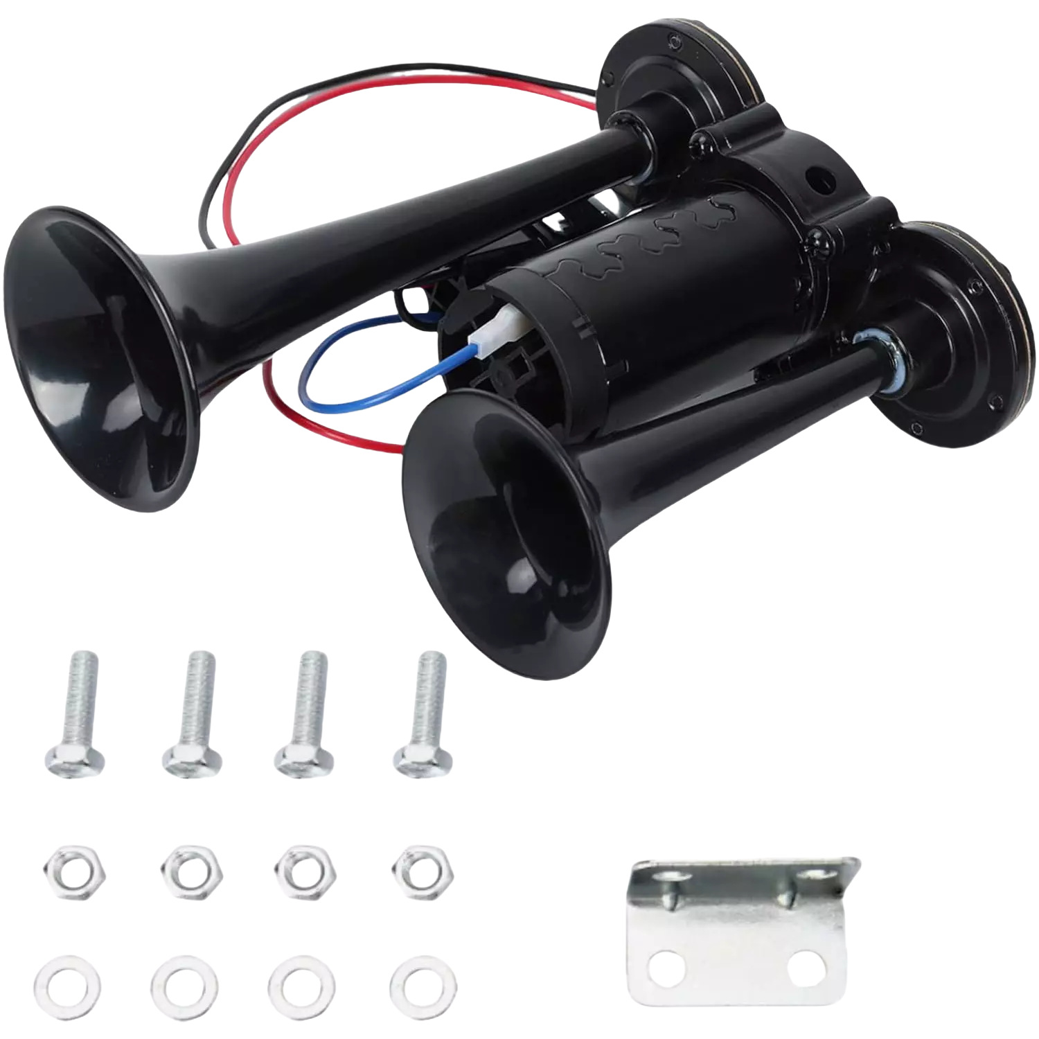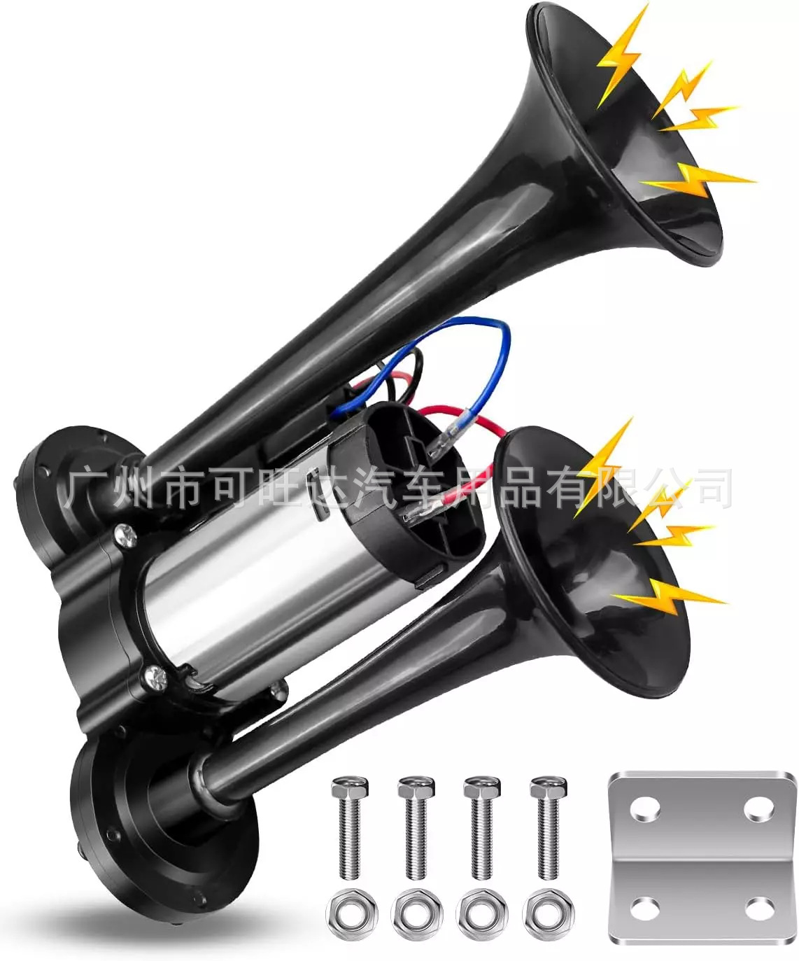 600DB 블랙 전기 경적 공급 더블 튜브 금속 일체형 전기 펌프 경적 릴레이 자동차 경적