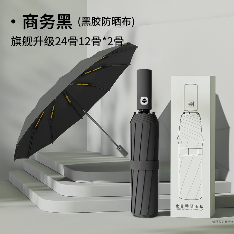 완전 자동 검은 고무 우산 전문 태양 보호 햇빛과 비 이중 사용 야외 태양 우산 간단한 비즈니스 햇빛 우산 로고 인쇄스토어 가기