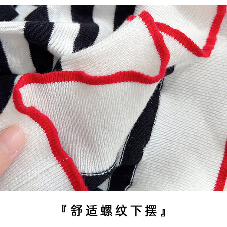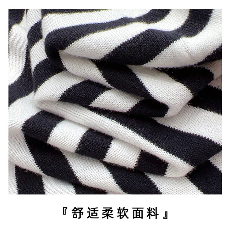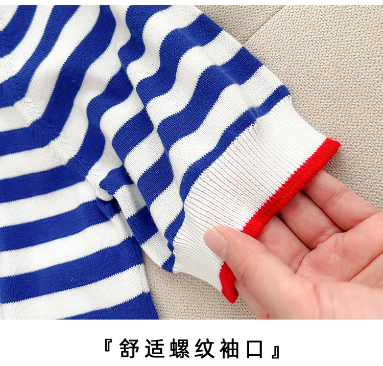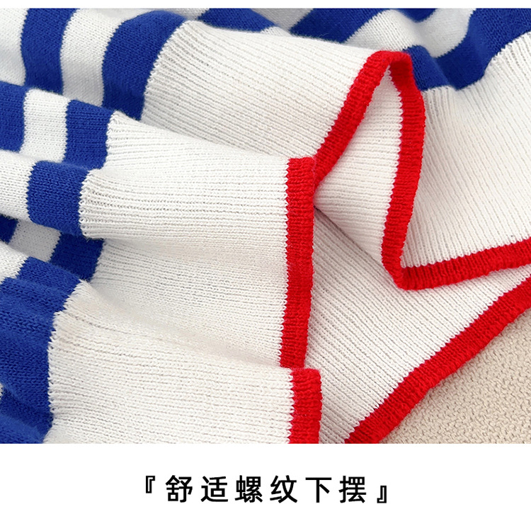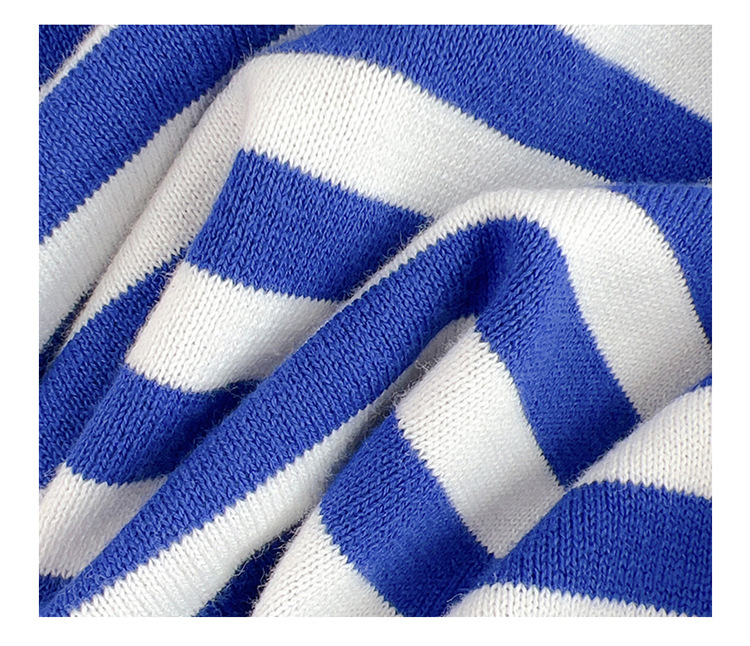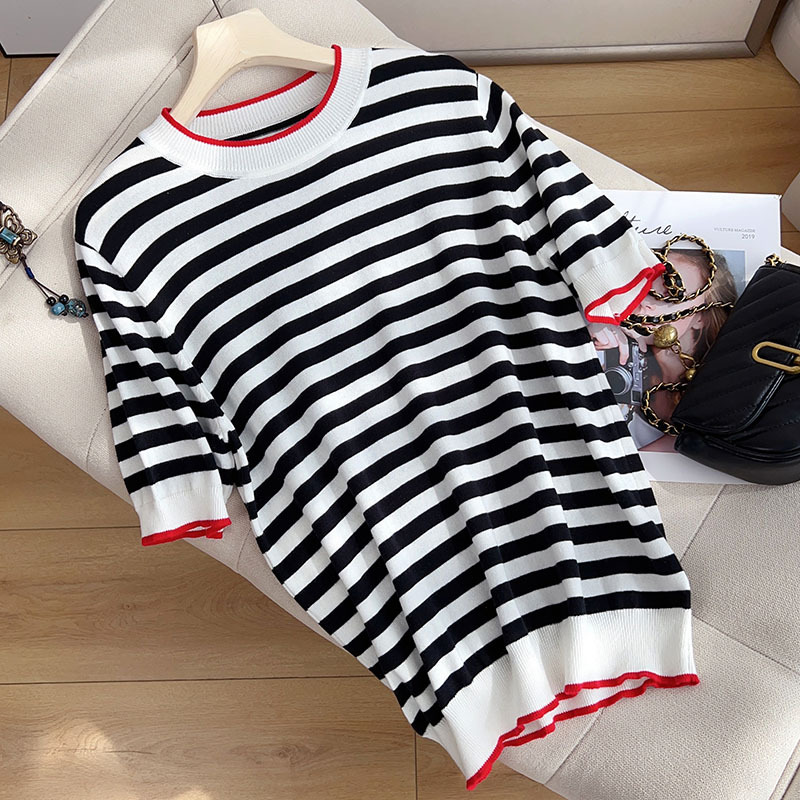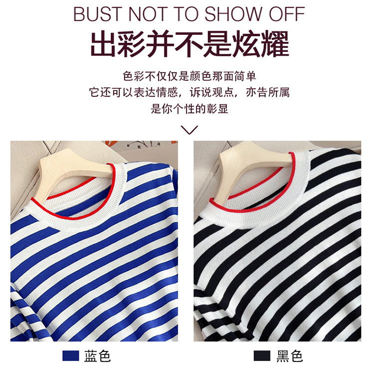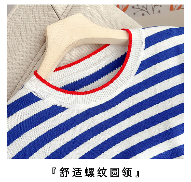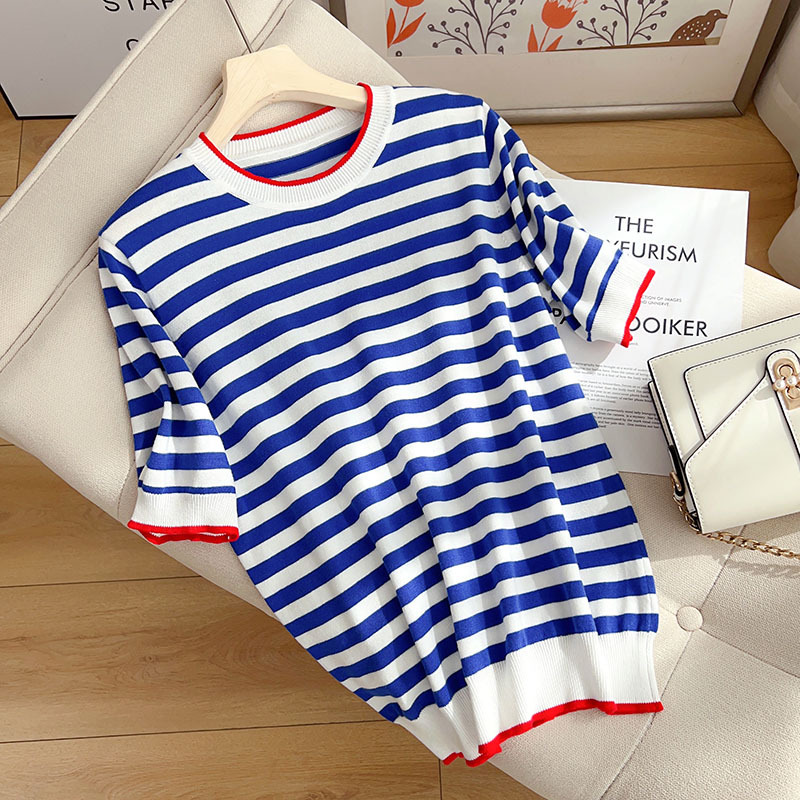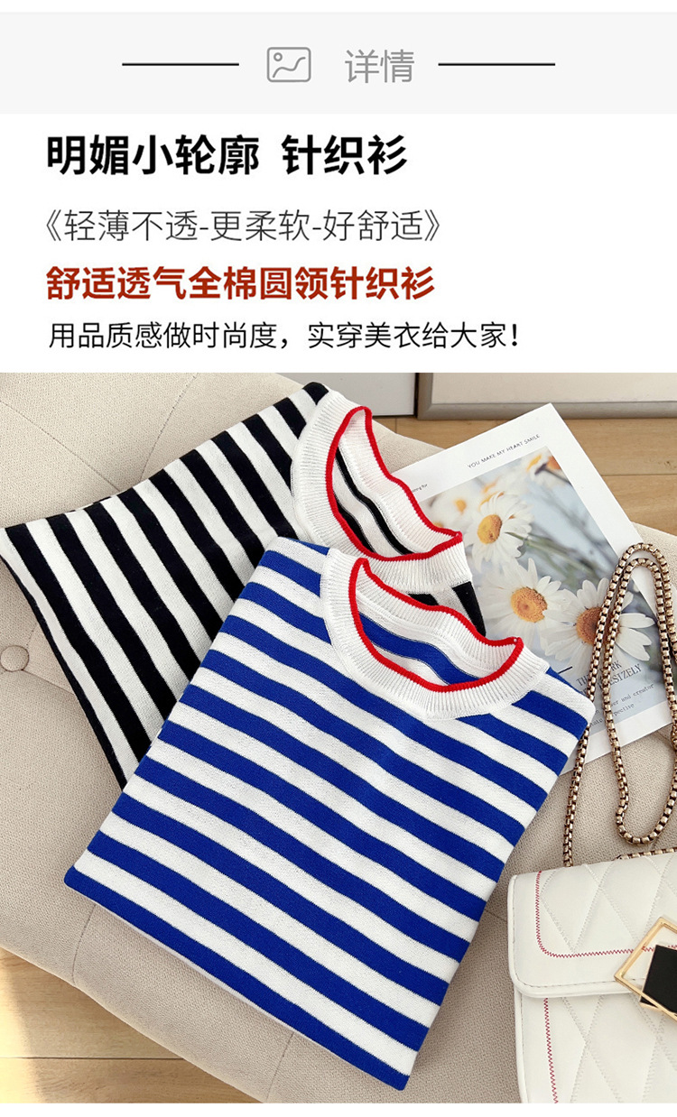 이 Y를 입력해야합니다! 상쾌한 블루와 화이트 스트라이프 루즈한 라운드 넥 소울 셔츠 코튼 니트 셔츠 여성용 봄과 여름 얇은 티셔츠