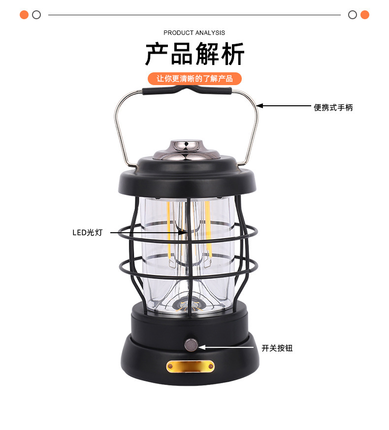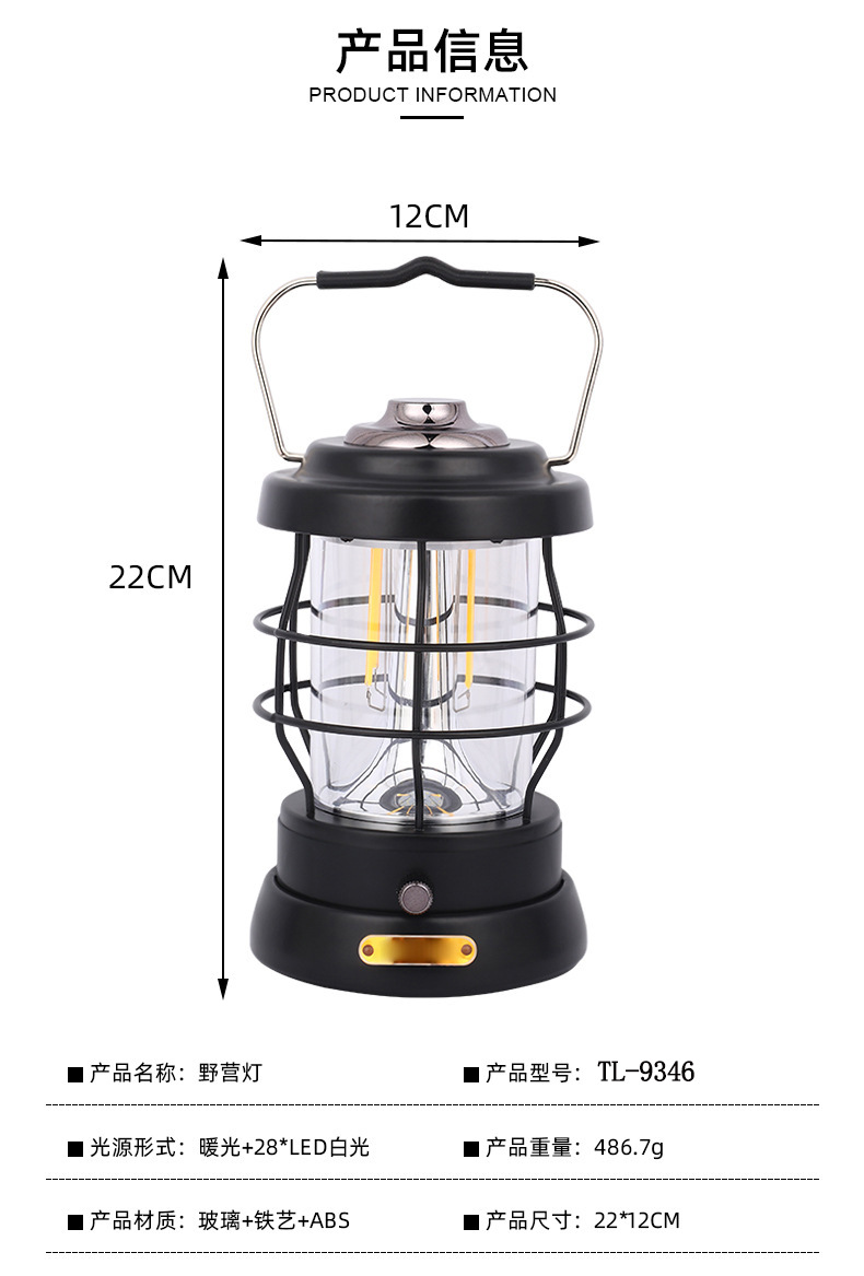 야외 캠핑 조명 캠핑 조명 LED 조명 복고풍 비상 텐트 조명 말 조명 분위기 조명 비상 작업 조명