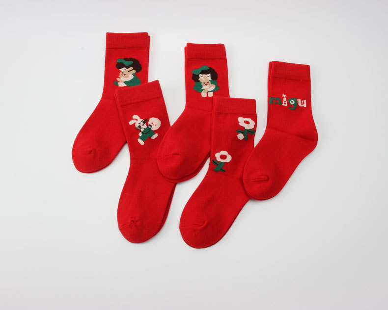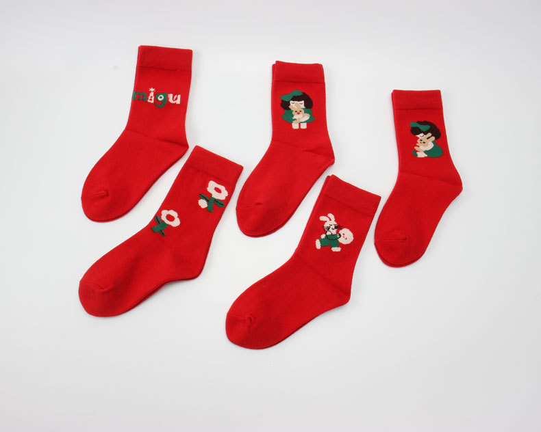 6 손가락 마우스 남자와 여자의 어린이 양말 봄 가을과 겨울 두꺼운 면 양말 아기 빨간 축제 크리스마스 큰 어린이 양말스토어 가기