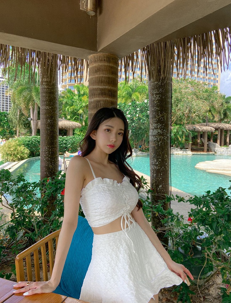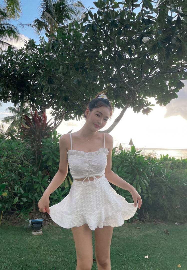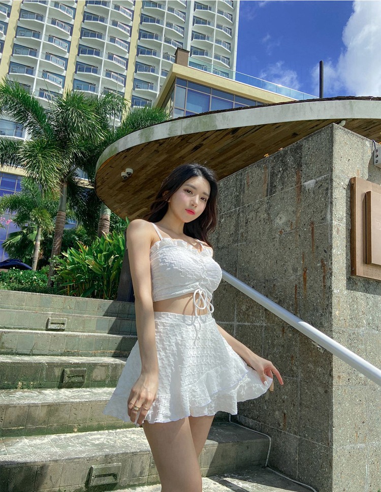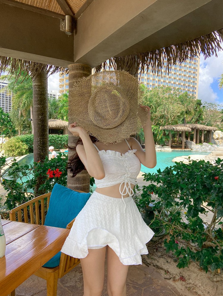 2024 한국 신상 솔리드 컬러 스플릿 수영복 여성용 서스펜더 섹시 패션 귀 스커트 휴가 수영복스토어 가기