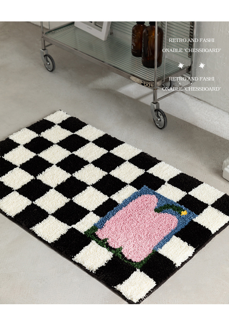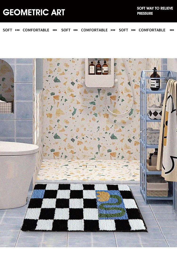 스타일 흑백 격자 화장실 발 매트 미끄럼 방지 매트 욕실 흡수 매트 화장실 문 카펫 화장실 바닥 매트스토어 가기