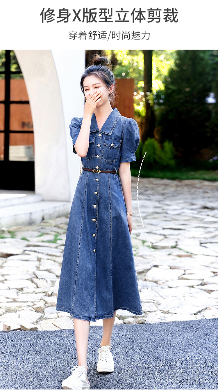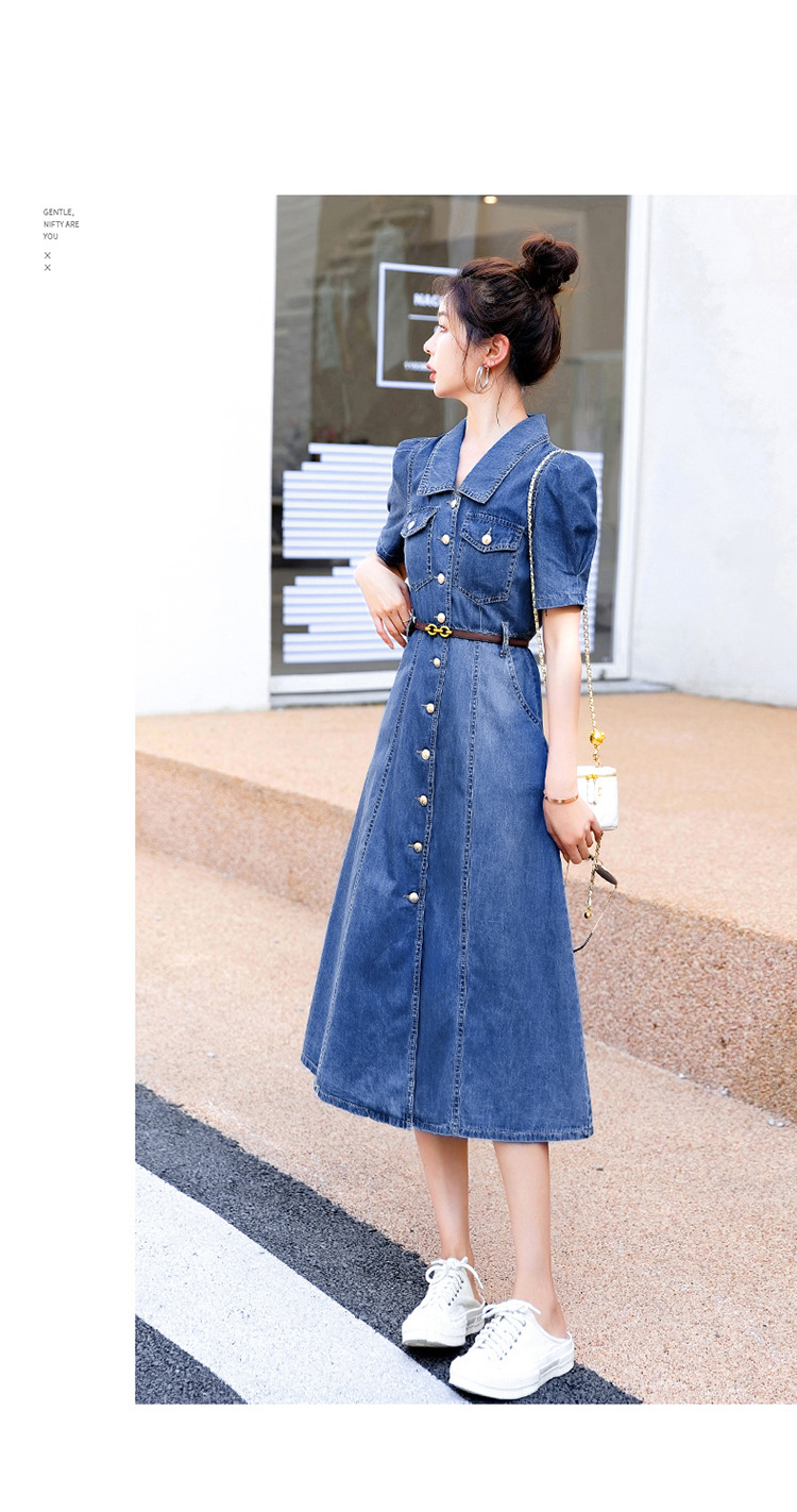 Tencel 데님 원피스 여자의 얇은 2023 여름 새로운 한국 스타일 유행 우아한 꽉 허리 슬리밍 셔츠 원피스스토어 가기