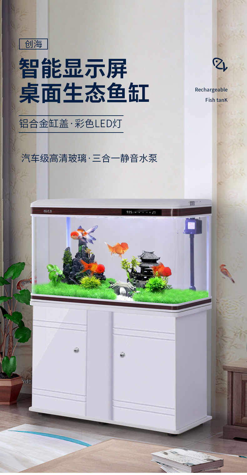 소스 공장 Chuanghai 지능형 데스크탑 생태 금붕어 탱크 거실 가구 중형 및 대형 유리 물 무료 수족관스토어 가기