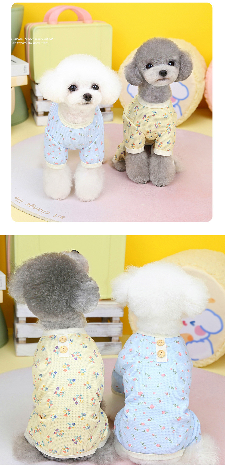 개 옷 봄과 여름 얇은 4 족 옷 가정 옷 와플 꽃 작은 개 테디 펫 4679 도매스토어 가기
