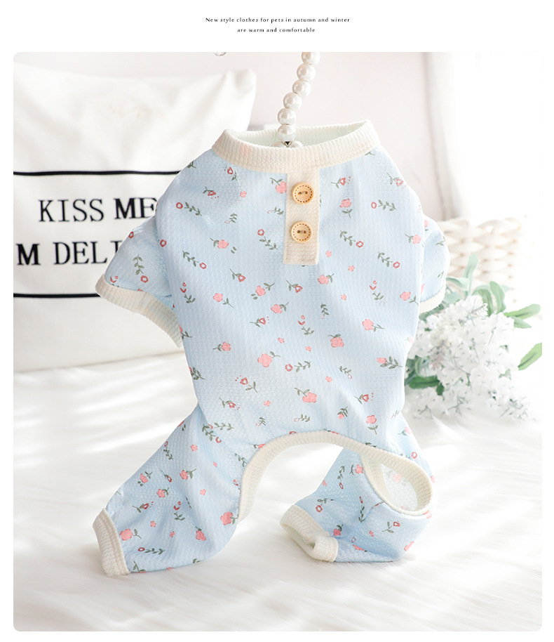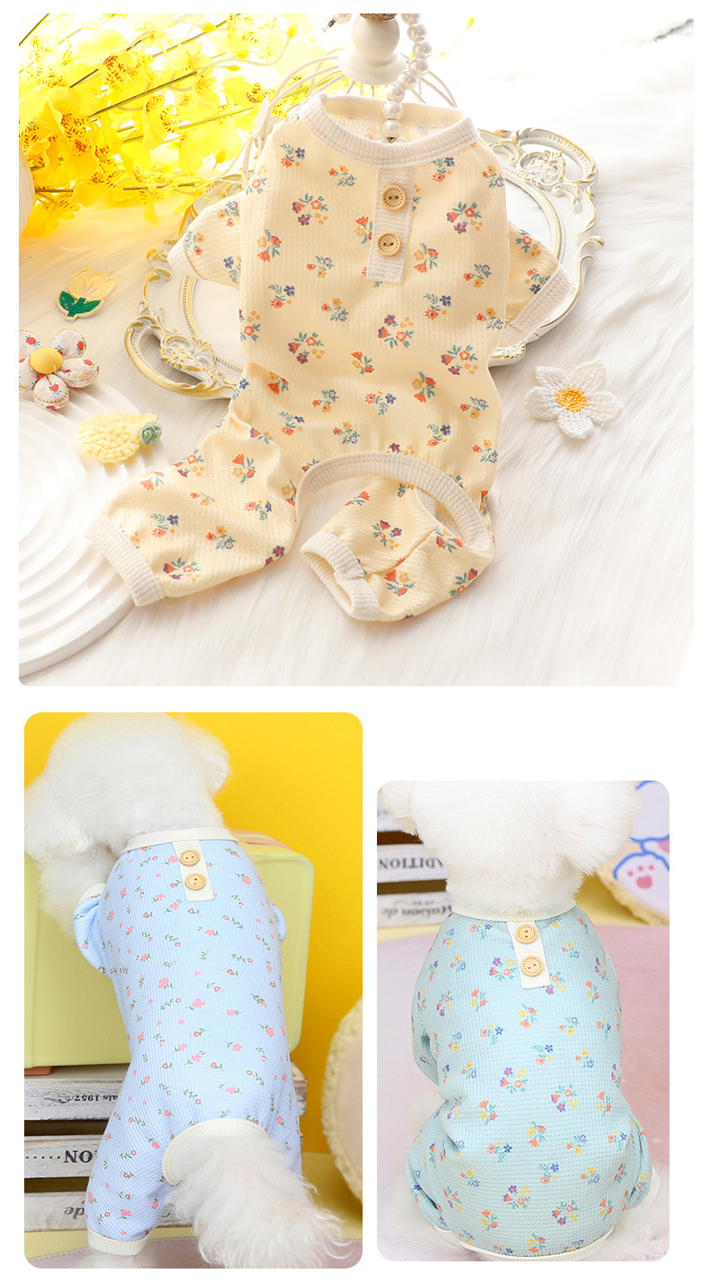 개 옷 봄과 여름 얇은 4 족 옷 가정 옷 와플 꽃 작은 개 테디 펫 4679 도매