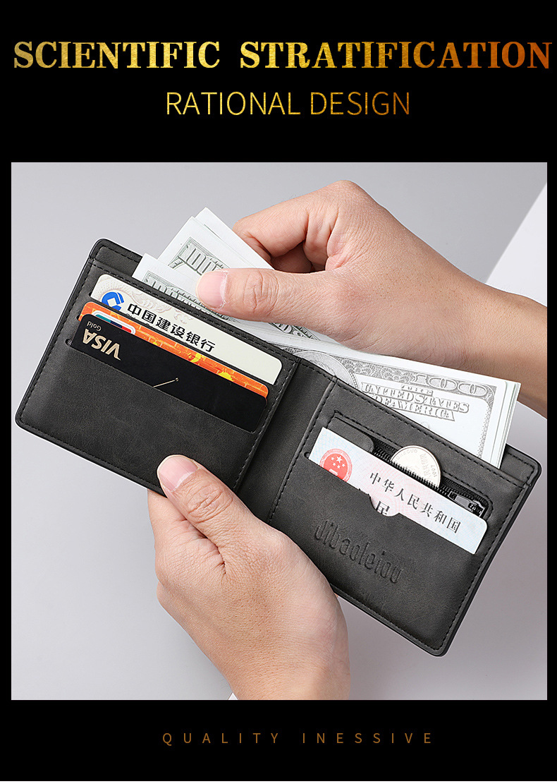2023 새로운 지갑 남성용 정품 남성용 짧은 지퍼 단순 부드러운 가죽 경량 지갑 레트로 지갑 학생