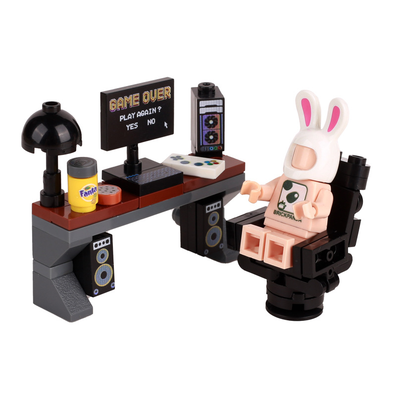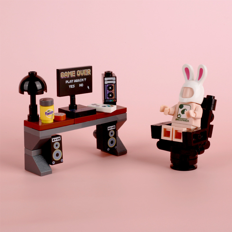MOC 도시 남자 장식품 사무실 침실 책상 게임 컴퓨터 책상 작은 입자 빌딩 블록 장난감 국경스토어 가기