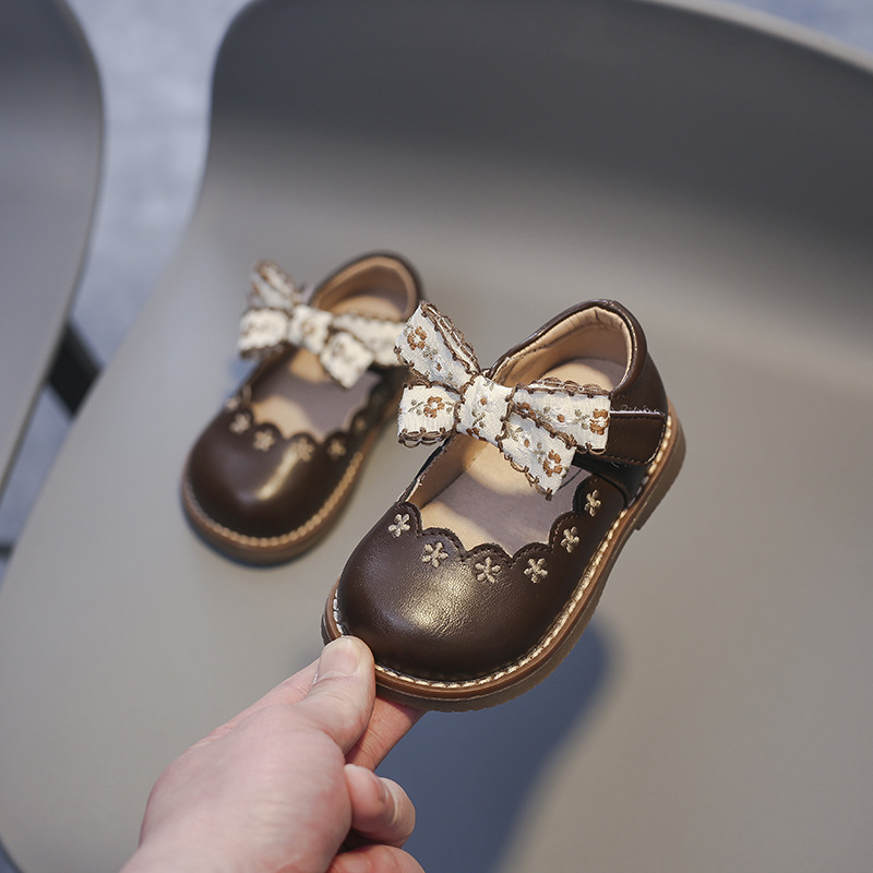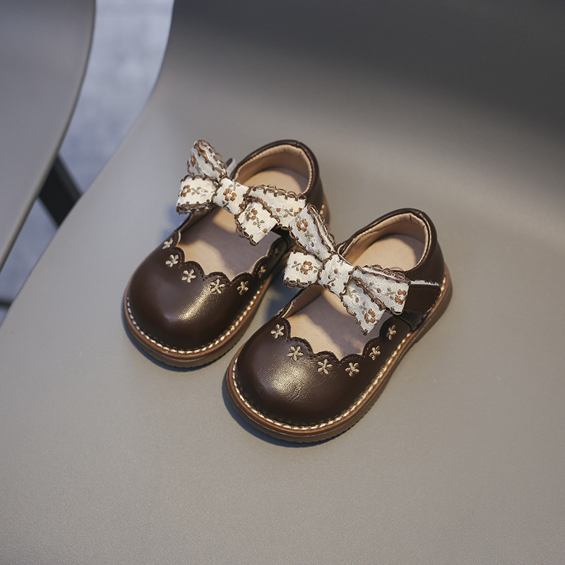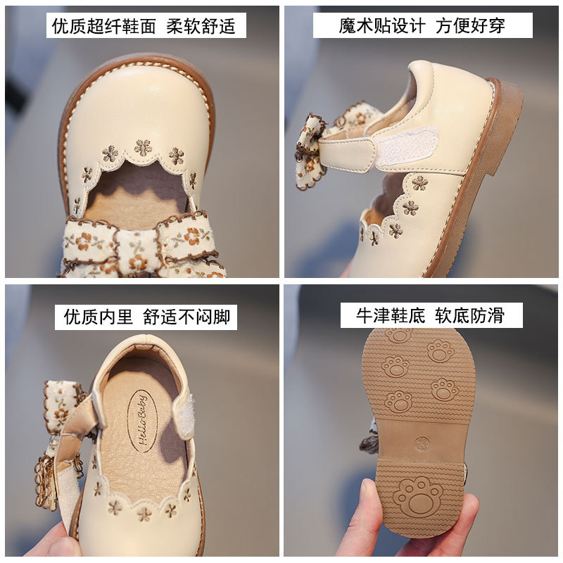 2023 봄과 가을 새로운 부드러운 밑창 아기 공주 단층 신발 어린이 신발 한국식 꽃 활 어린이 신발 여아 가죽 신발스토어 가기