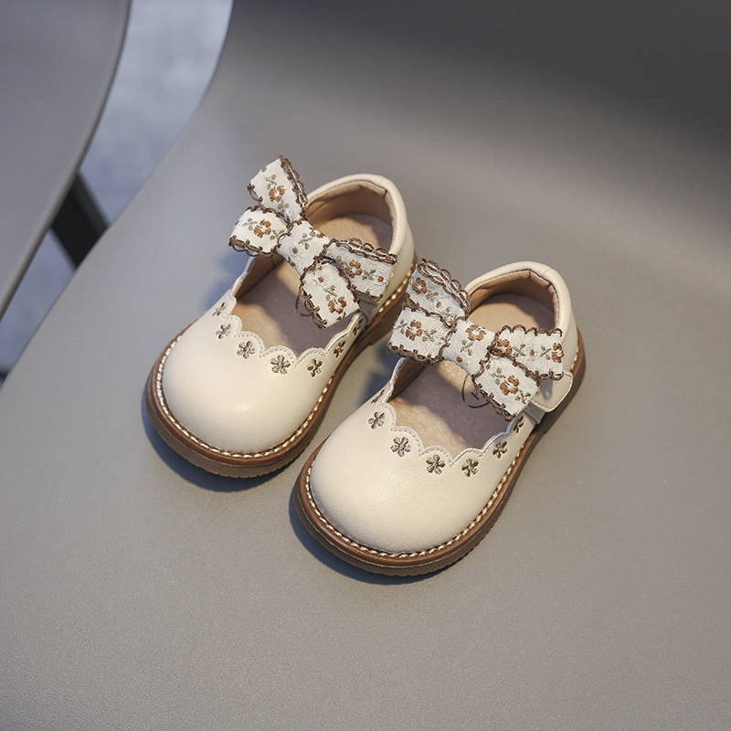 2023 봄과 가을 새로운 부드러운 밑창 아기 공주 단층 신발 어린이 신발 한국식 꽃 활 어린이 신발 여아 가죽 신발