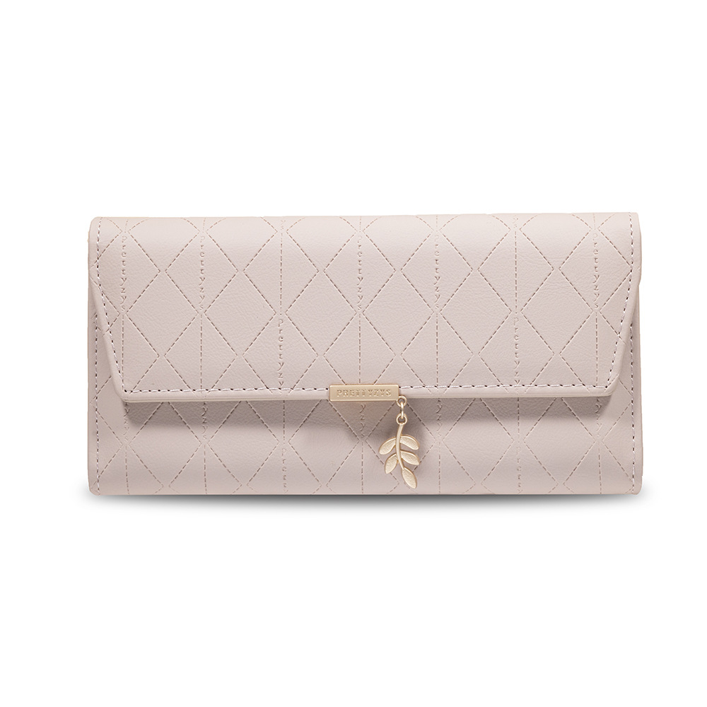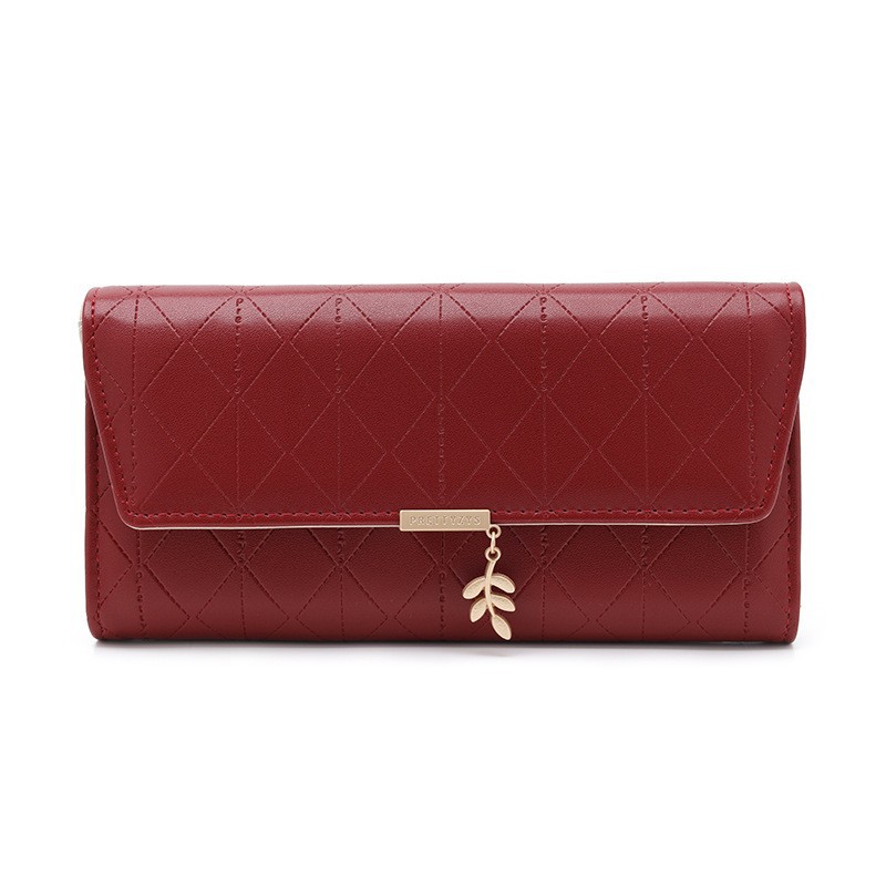 정난 인기 여성용 장지갑 한국 스타일 PU 가죽 격자무늬 잎 모양 버클 70% off 가방 대용량 여성용 핸드백