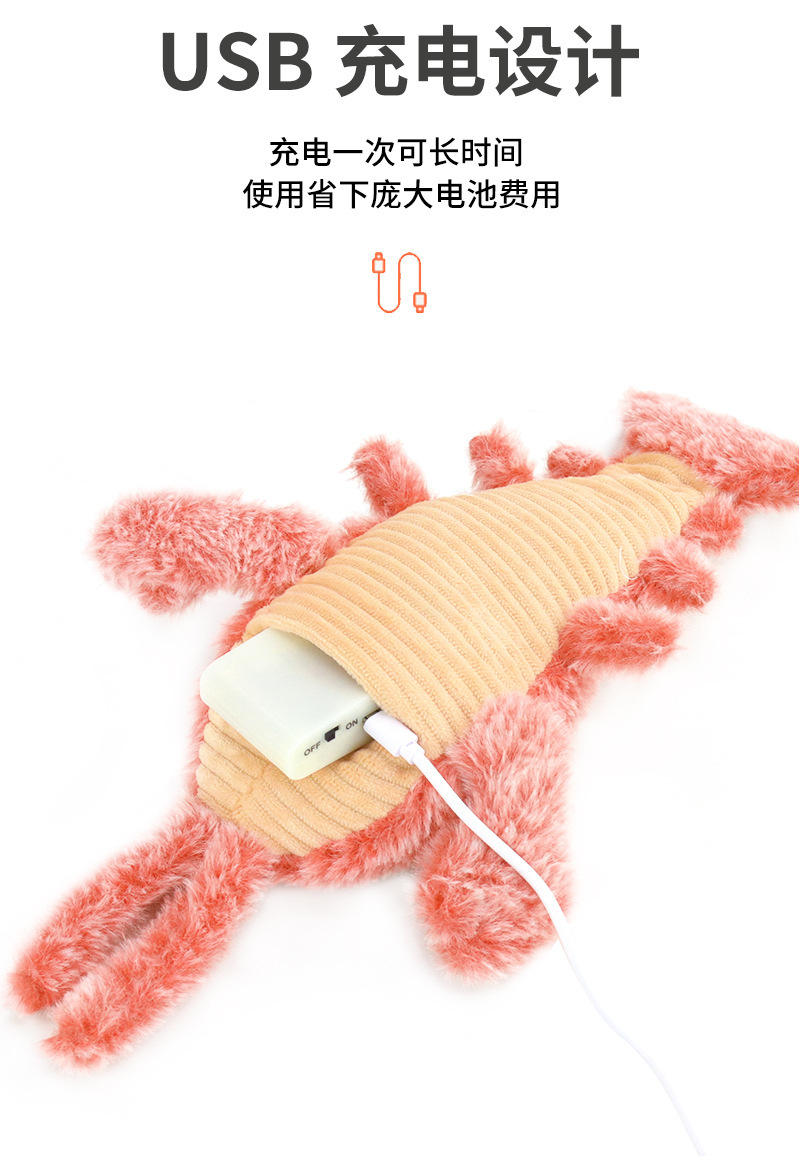 애완 동물 용품 점프 새우 봉제 장난감 USB 충전 시뮬레이션 랍스터 개와 고양이를위한 전기 바운스 장난감스토어 가기