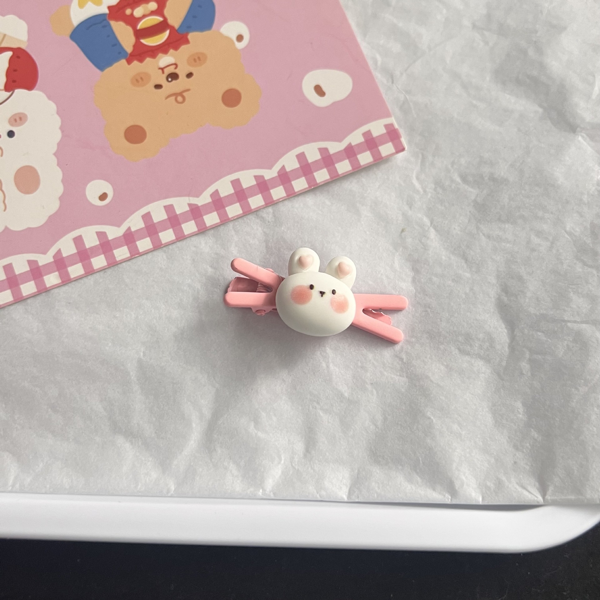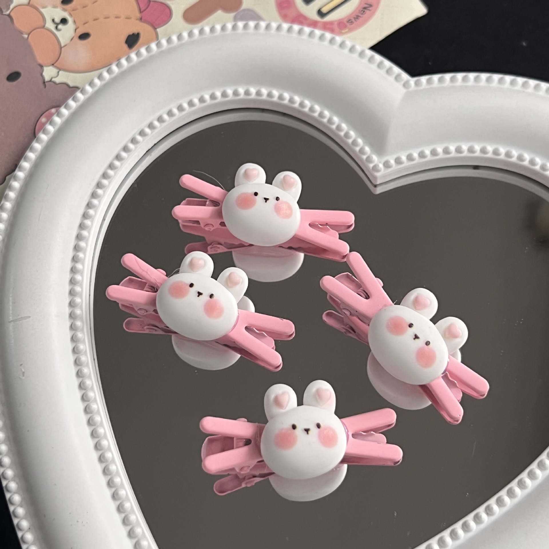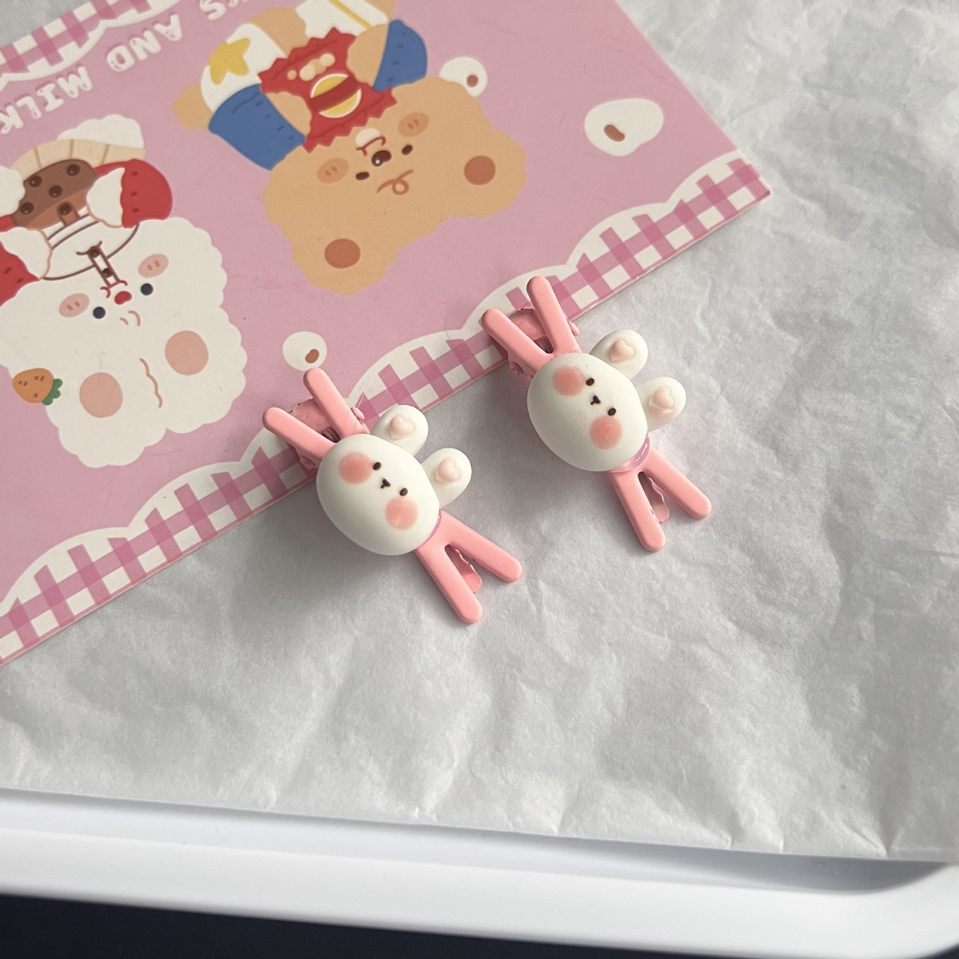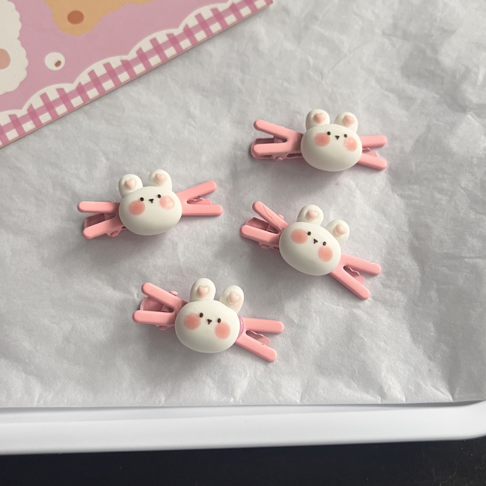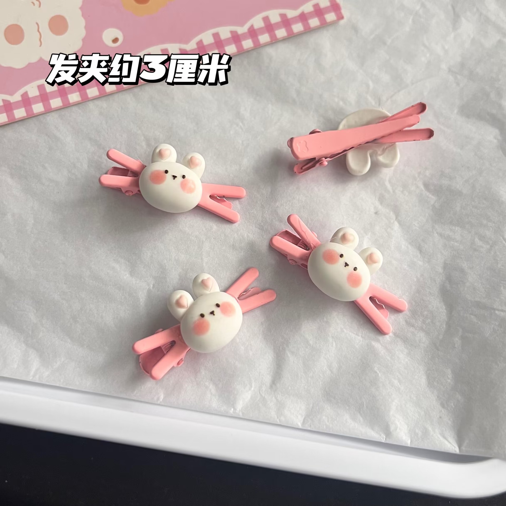 원래 디자인 귀여운 핑크 만화 토끼 머리핀 일본식 소녀 머리핀 크로스 클립 깨진 머리핀 측면 모자스토어 가기