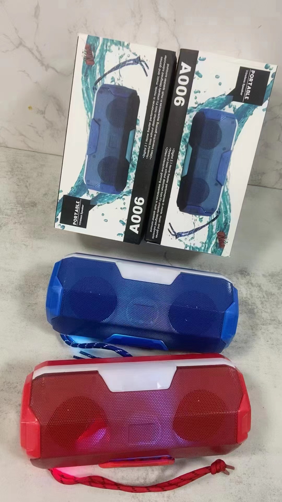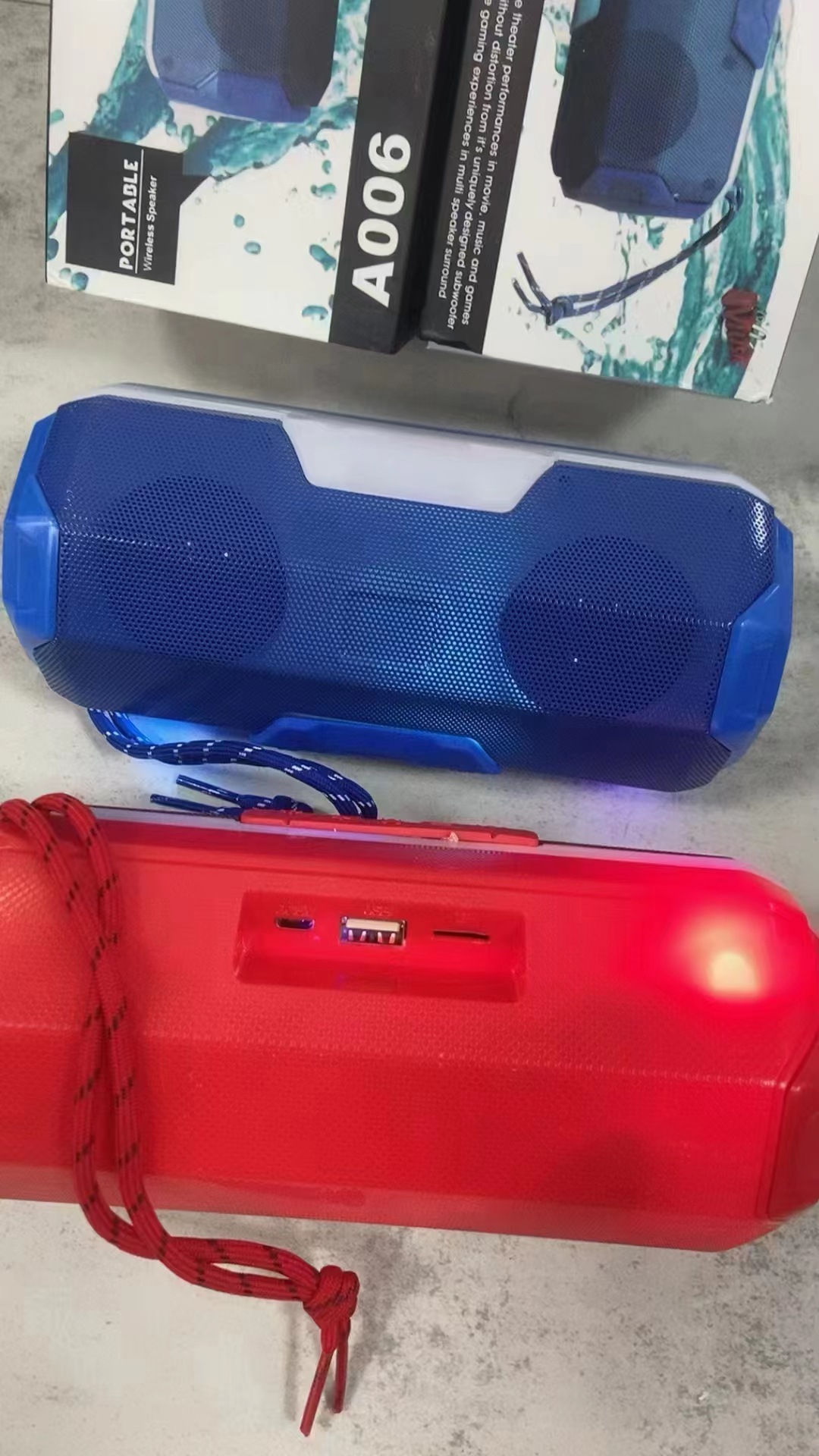 A006 재고 무선 휴대용 블루투스 스피커 휴대용 다채로운 LED 자동차 블루투스 서브 우퍼 도매 듀얼 스피커