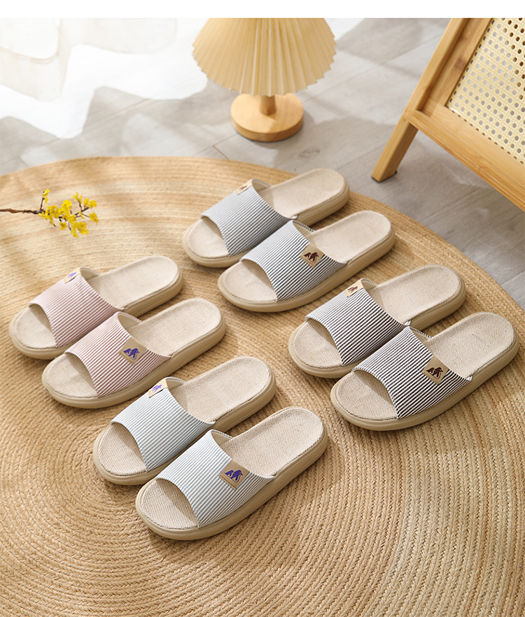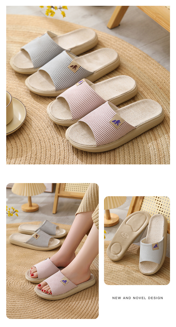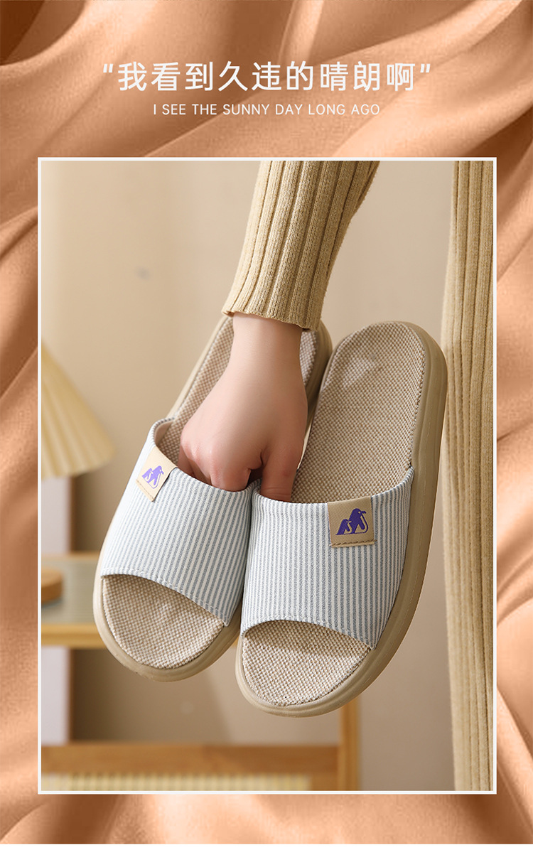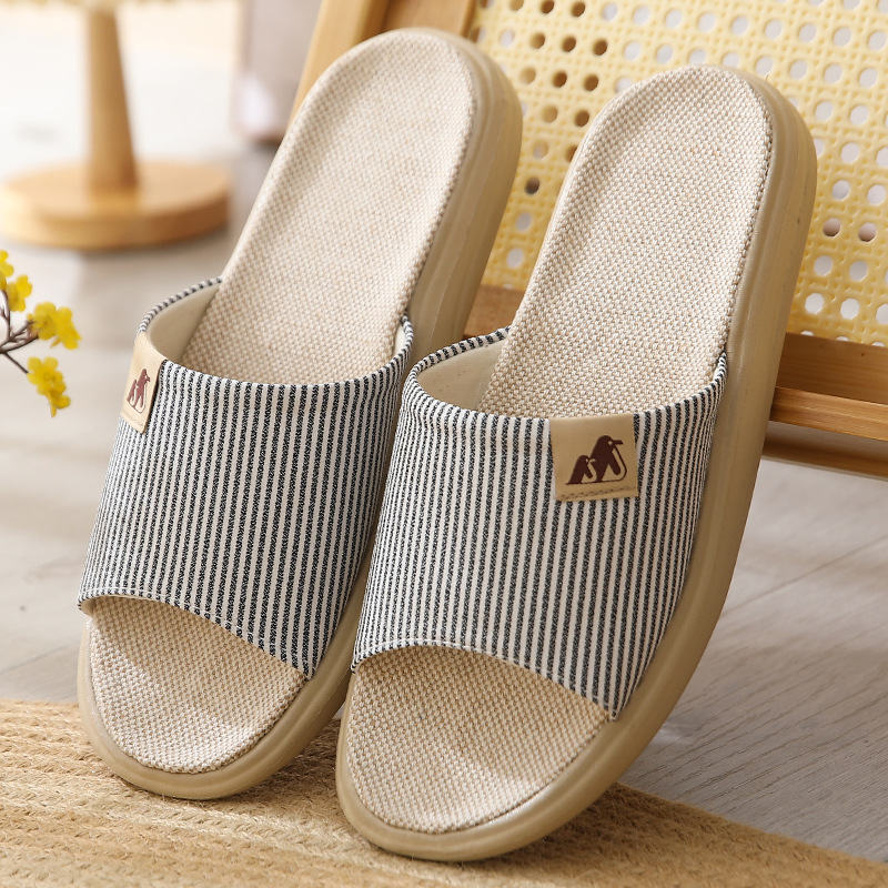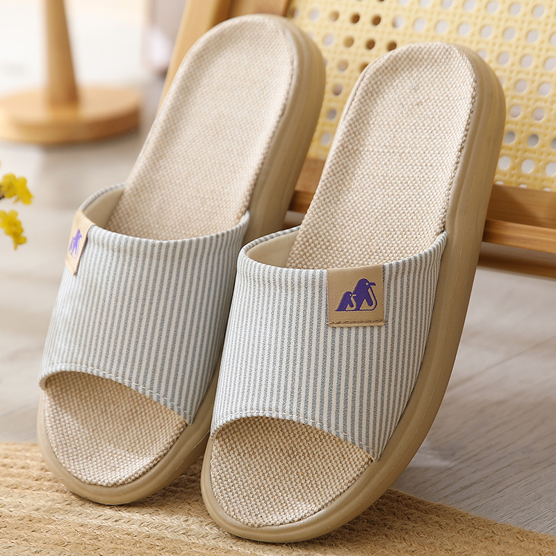 린넨 슬리퍼 샌들 커플 면과 린넨 실내 미끄럼 방지 홈 슬리퍼 사일런트 높이 두꺼운 바닥 슬리퍼스토어 가기