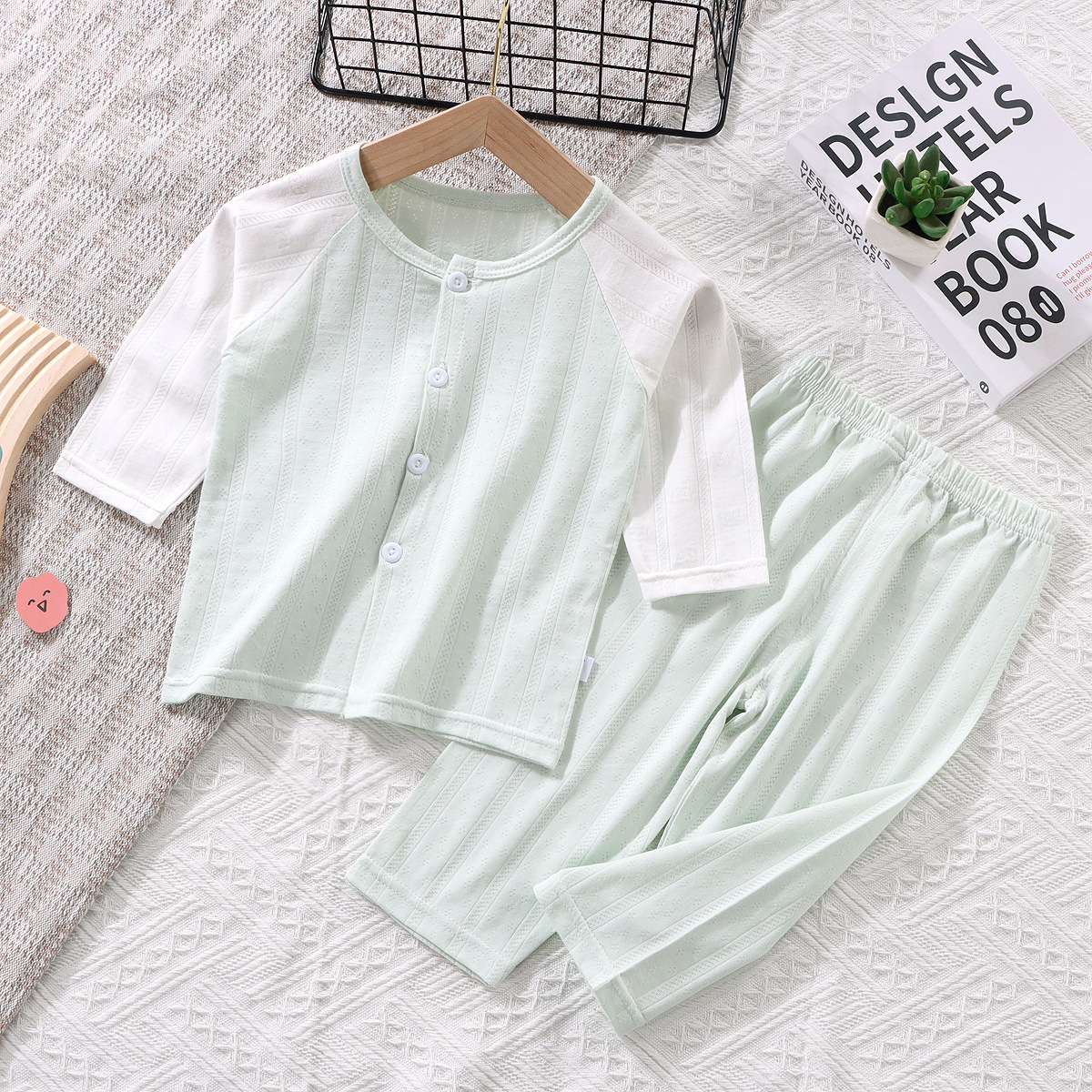 어린이 여름 카디건 닙 슬리브 세트 아기 잠옷 에어컨 착용 얇은 신생아 분할 짧은 소매 두 세트