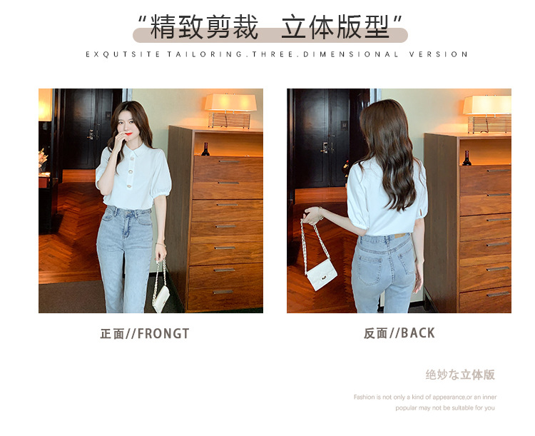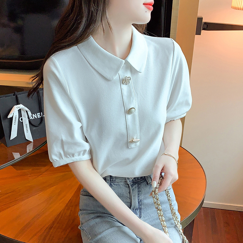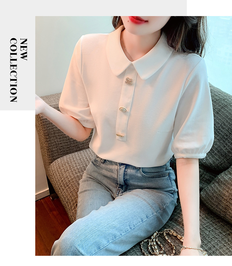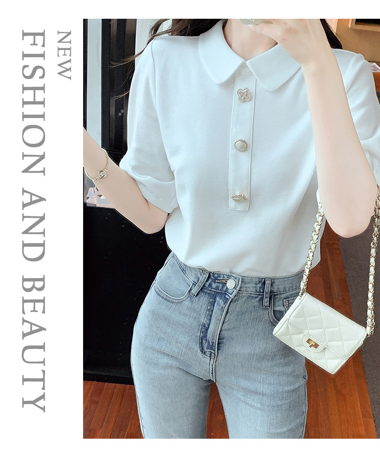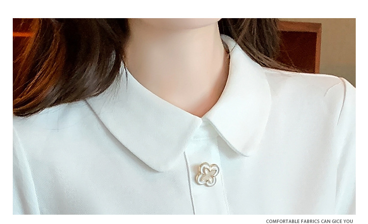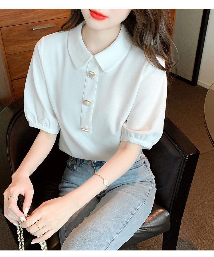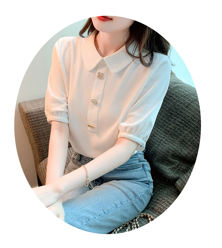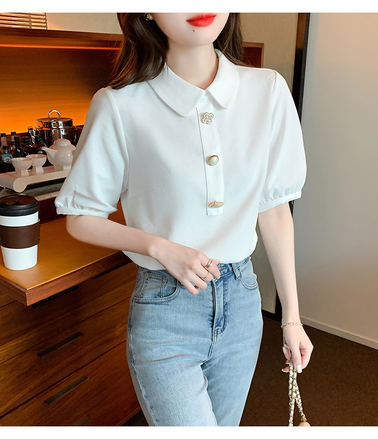 2025년 여름 신상 화이트 돌리넥 반팔 쉬폰 셔츠 여성용 달콤하고 패셔너블하며 나이를 줄여주는 스타일리시한 셔츠스토어 가기