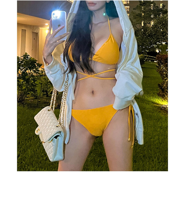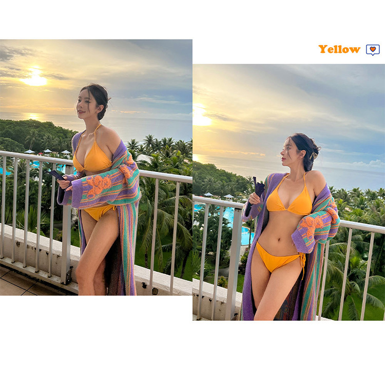 2026년 신상 여성용 분리형 단색 삼각형 비키니 유럽 및 미국 섹시한 핫걸 슬림 수영복스토어 가기