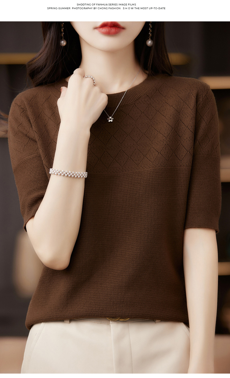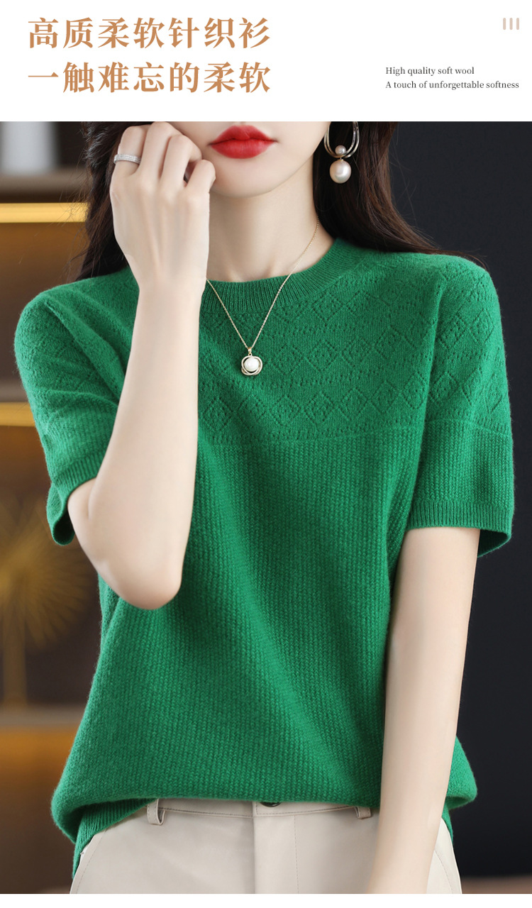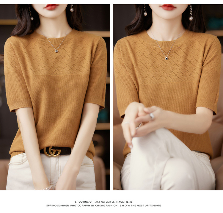 니트 티셔츠 여성 여름 2022 새로운 라운드 넥 마름모 중공 반팔 여성 패션 니트 하프 슬리브 숙녀상의스토어 가기