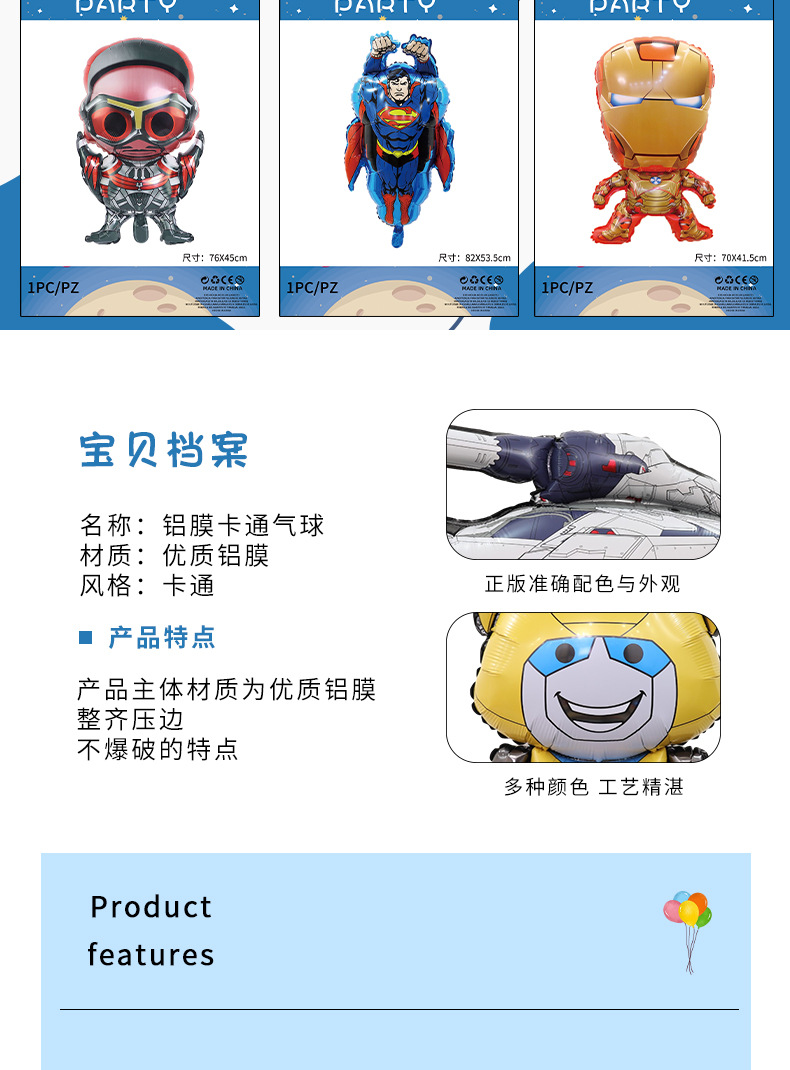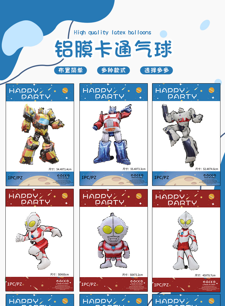 울트라맨 트랜스포머 고양이 아이 만화 알루미늄 필름 풍선 백 카드 별도 포장 어린이 생일 장난감 풍선
