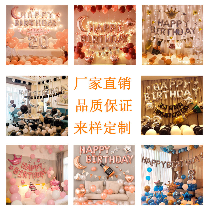 아마존 크로스 보더 생일 알루미늄 필름 풍선 패키지 영숫자 풍선 세트 생일 파티 배경 장식