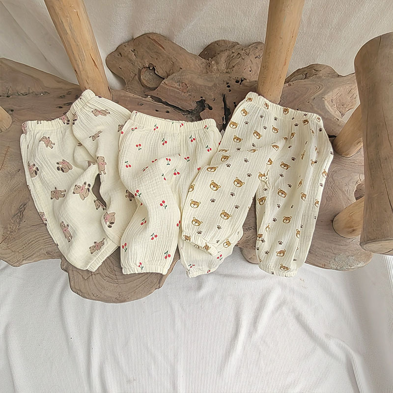 한국식 봄과 여름 아기 모기 방지 바지 아기와 유아 만화 인쇄 에어컨 바지 만화 곰 스포츠 캐주얼 바지