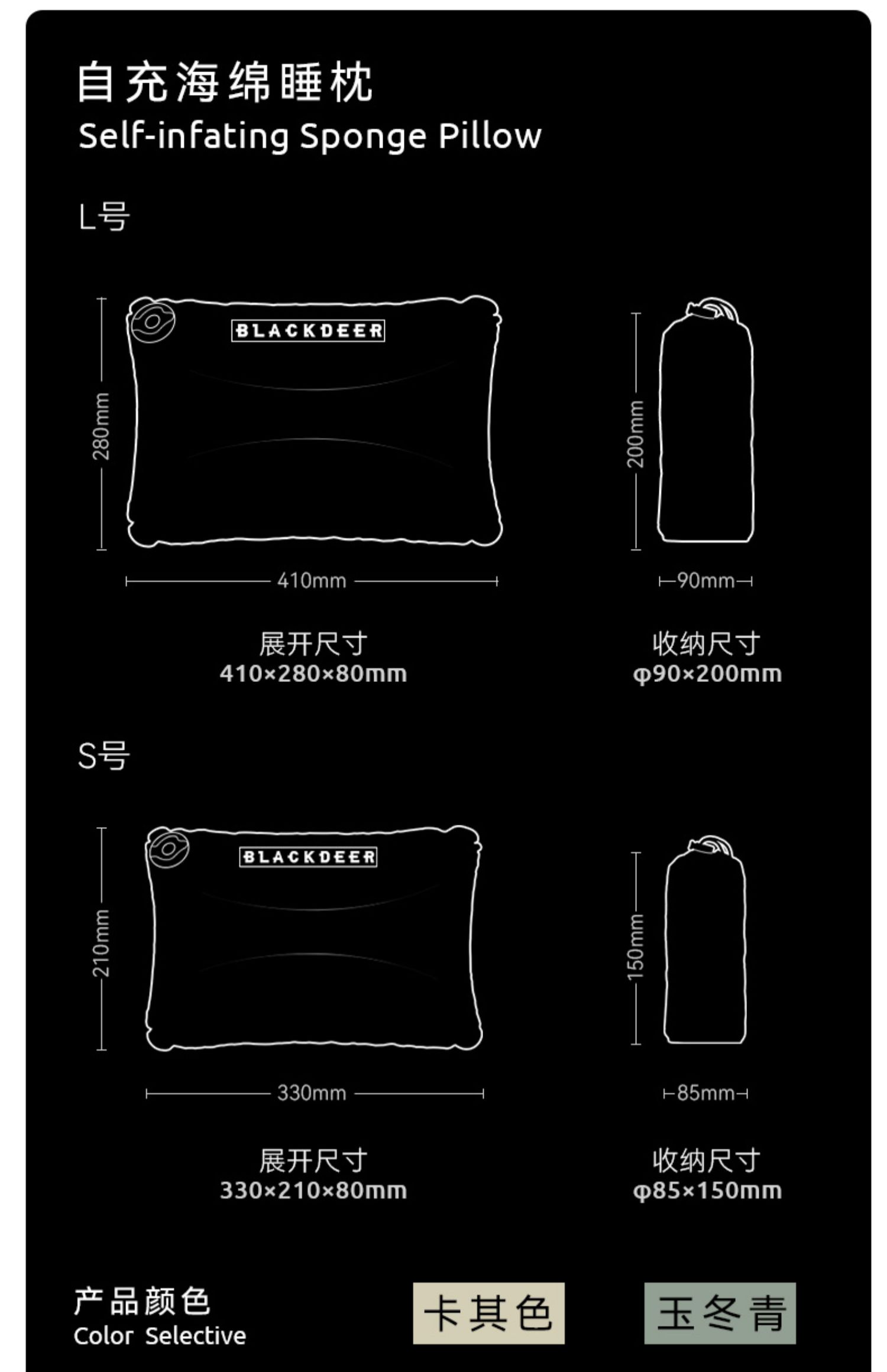 BLACKDEER 셀프 충전 스폰지 수면 베개 야외 캠핑 휴대용 가정 여행 낮잠 편안한 베개