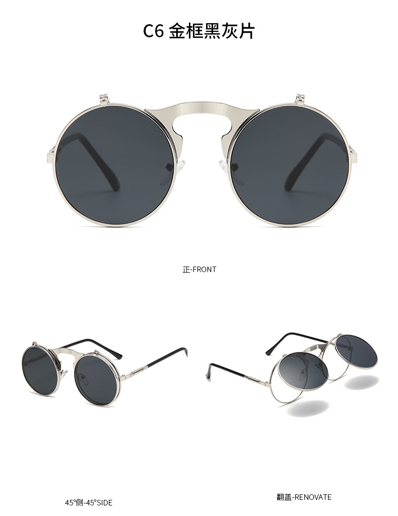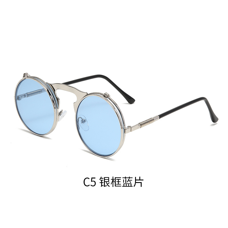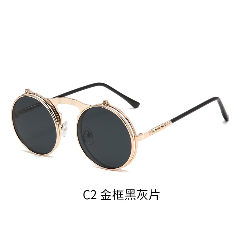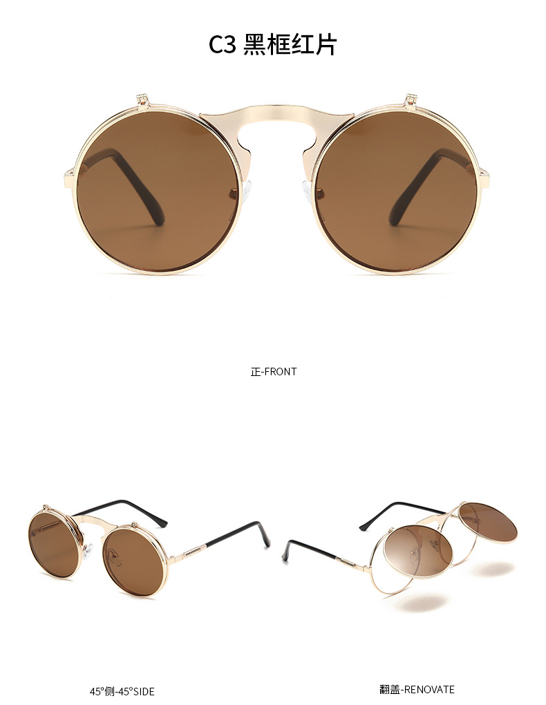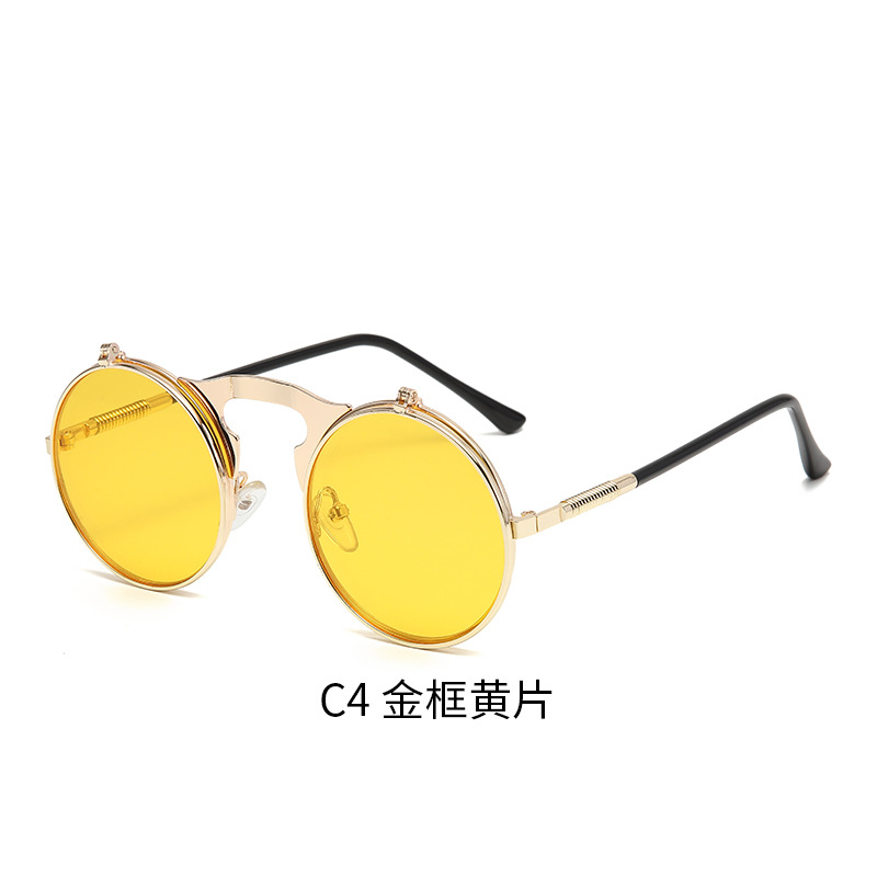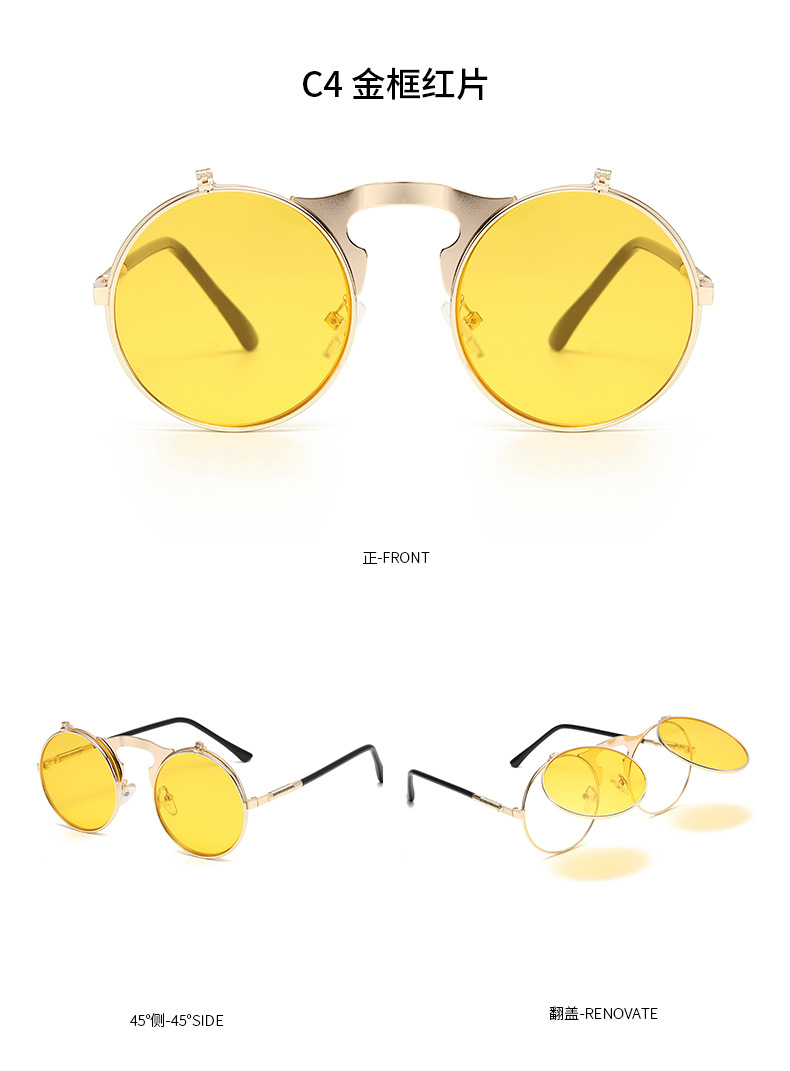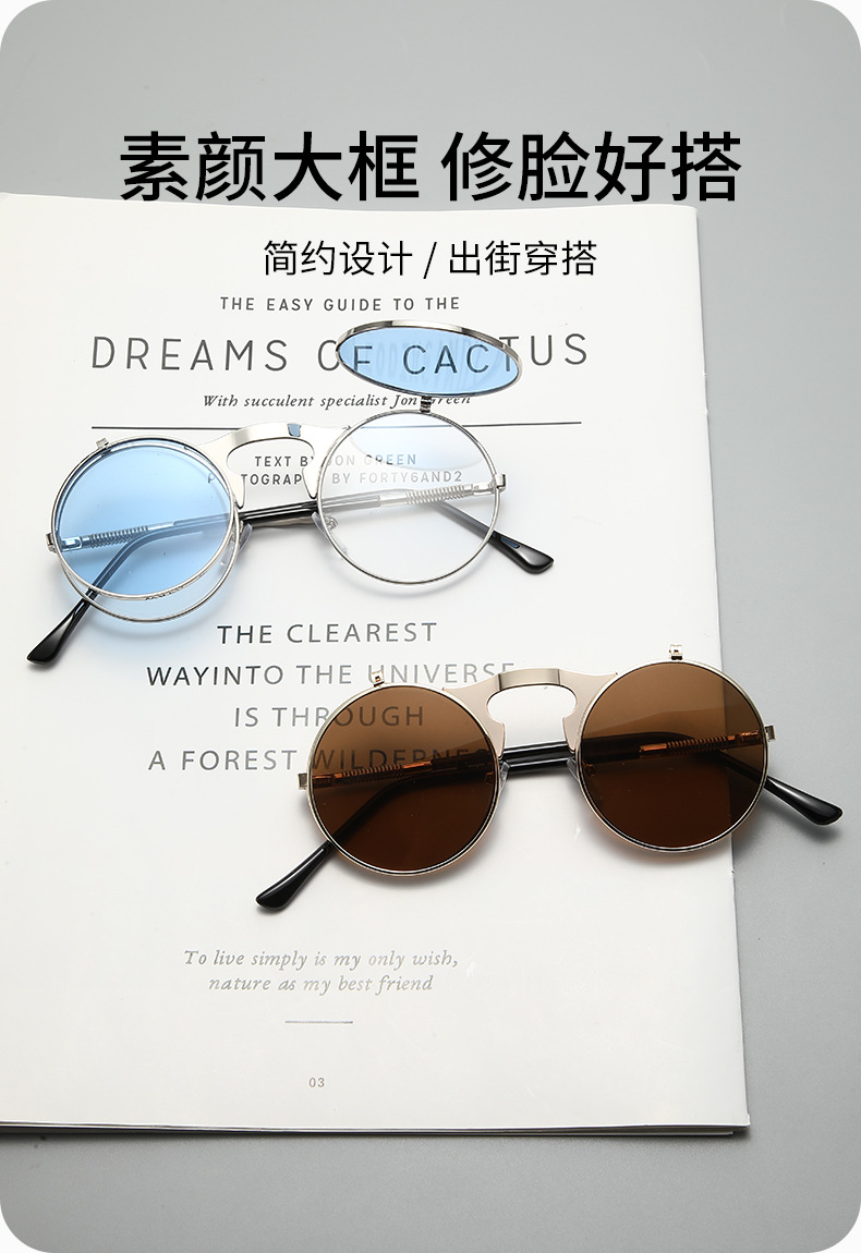 GLAZZY 크로스 보더 레트로 메탈 스팀펑크 플립 온 선글라스 접는 선글라스 남성용 및 여성용 안경 트렌디 라운드 프레임 왕자의 거울스토어 가기