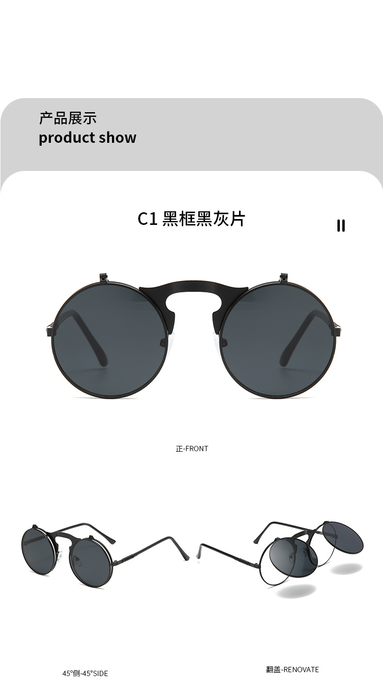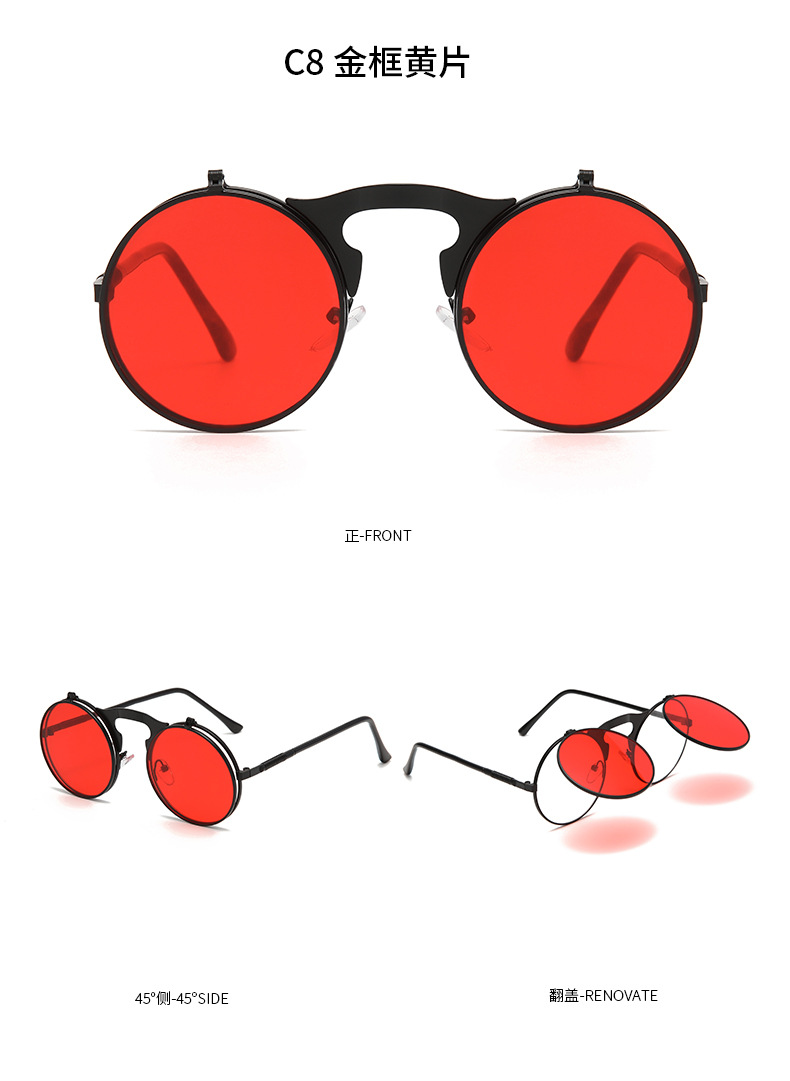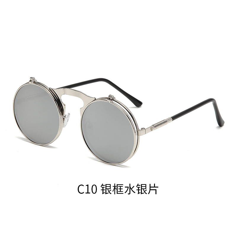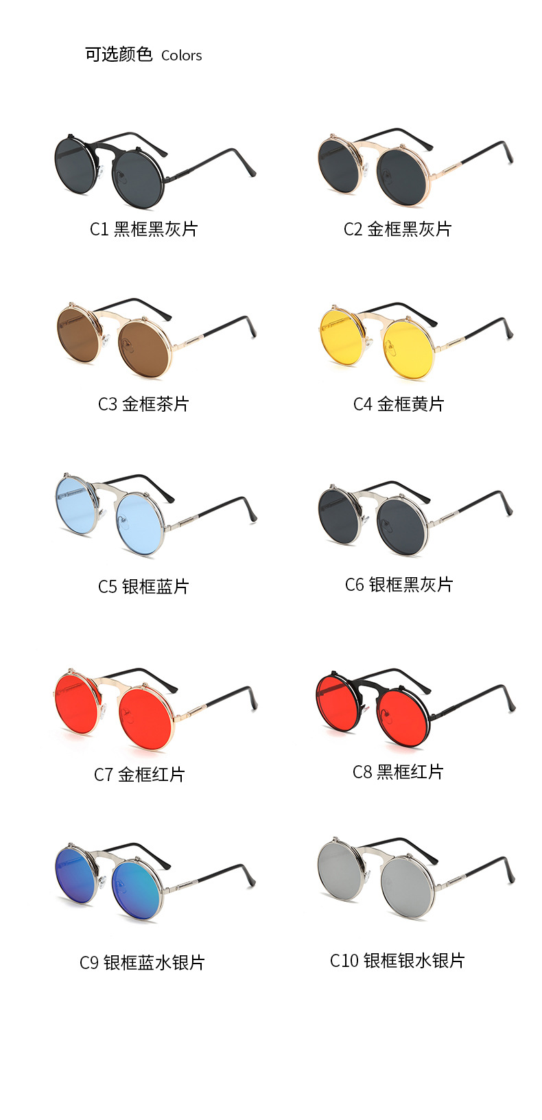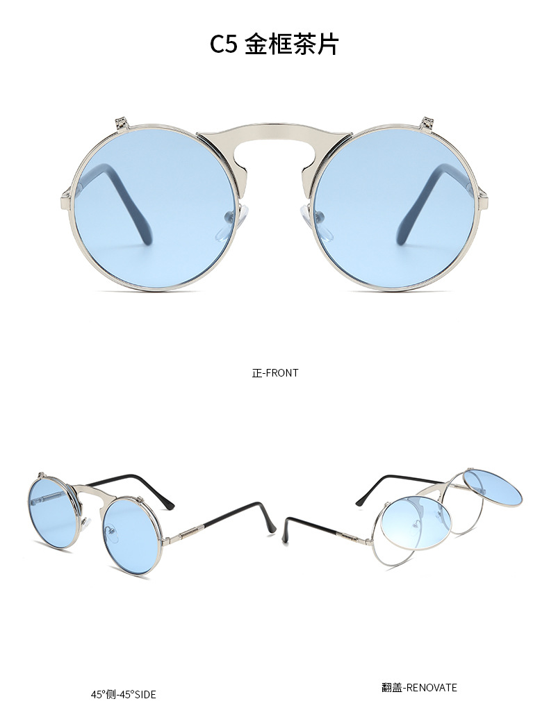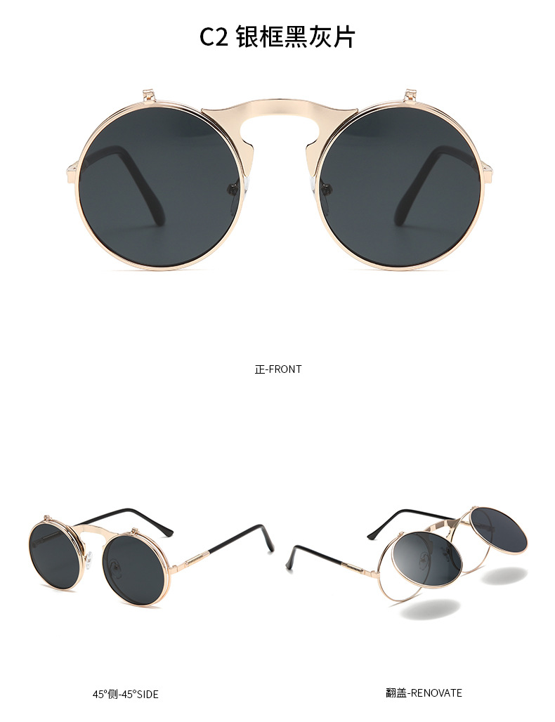 GLAZZY 크로스 보더 레트로 메탈 스팀펑크 플립 온 선글라스 접는 선글라스 남성용 및 여성용 안경 트렌디 라운드 프레임 왕자의 거울스토어 가기